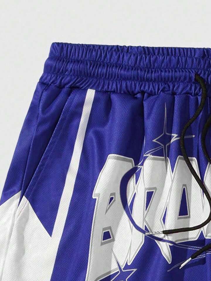Street Life Short De Sport Imprimé Lettre À Coutures Contrastées Pour Hommes Été