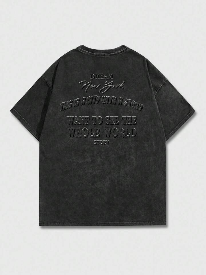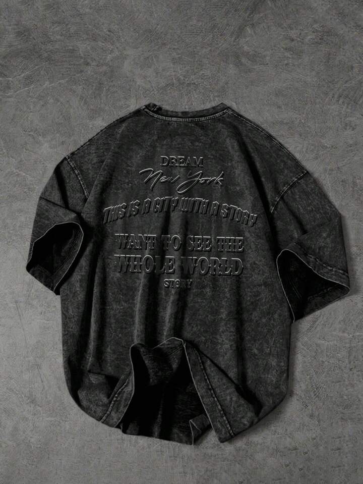 Street Life T-shirt décontracté pour hommes avec graphique anglais délavé