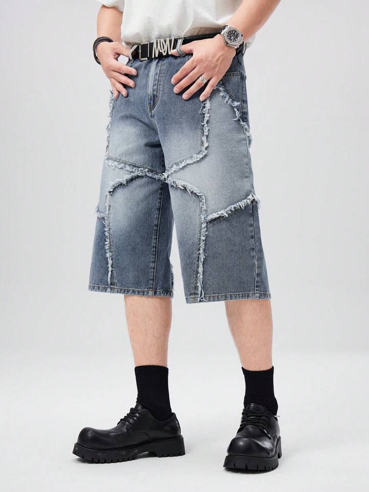 Street Life Jeans Capri Baggy Homme à Imprimé Étoilé Décoloré et à la Mode