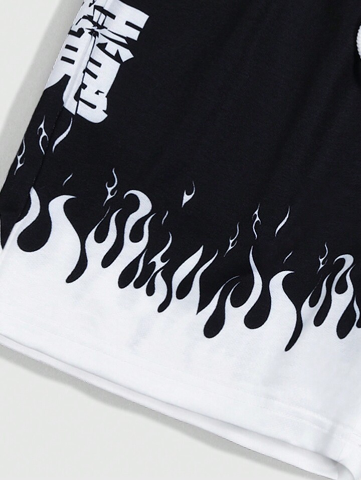 Street Life Short de basketball décontracté pour hommes avec motif de flamme anime, double taille. Minimaliste et élégant pour un port quotidien