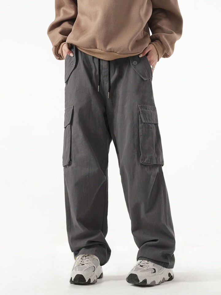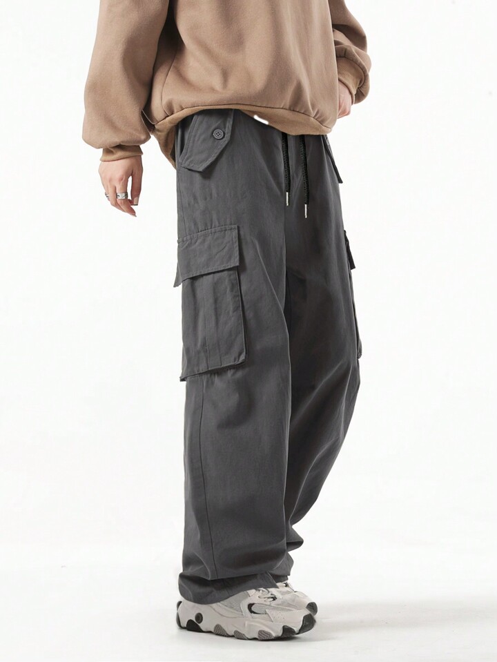 Street Life Pantalon cargo ample avec poches à rabat, cordon de serrage à la taille, pour hommes, école