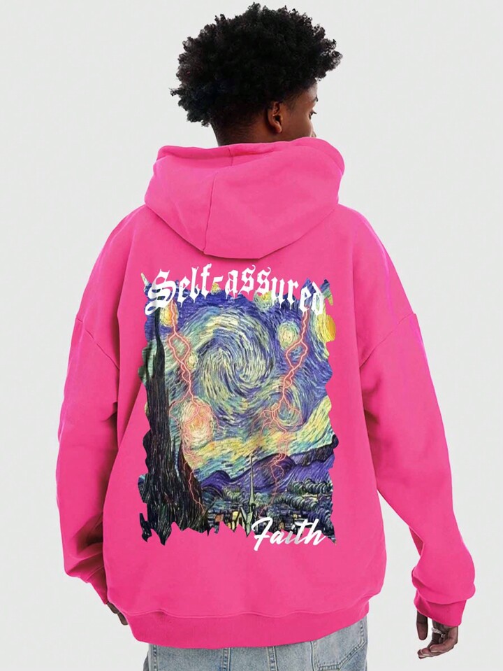 Street Life Sweatà capuche pour hommes avec lettrage et impression de peinture à l'huile, doublé thermique