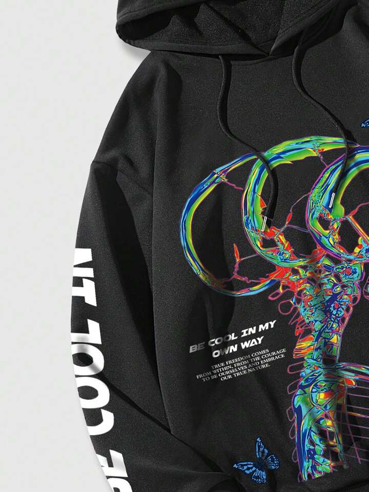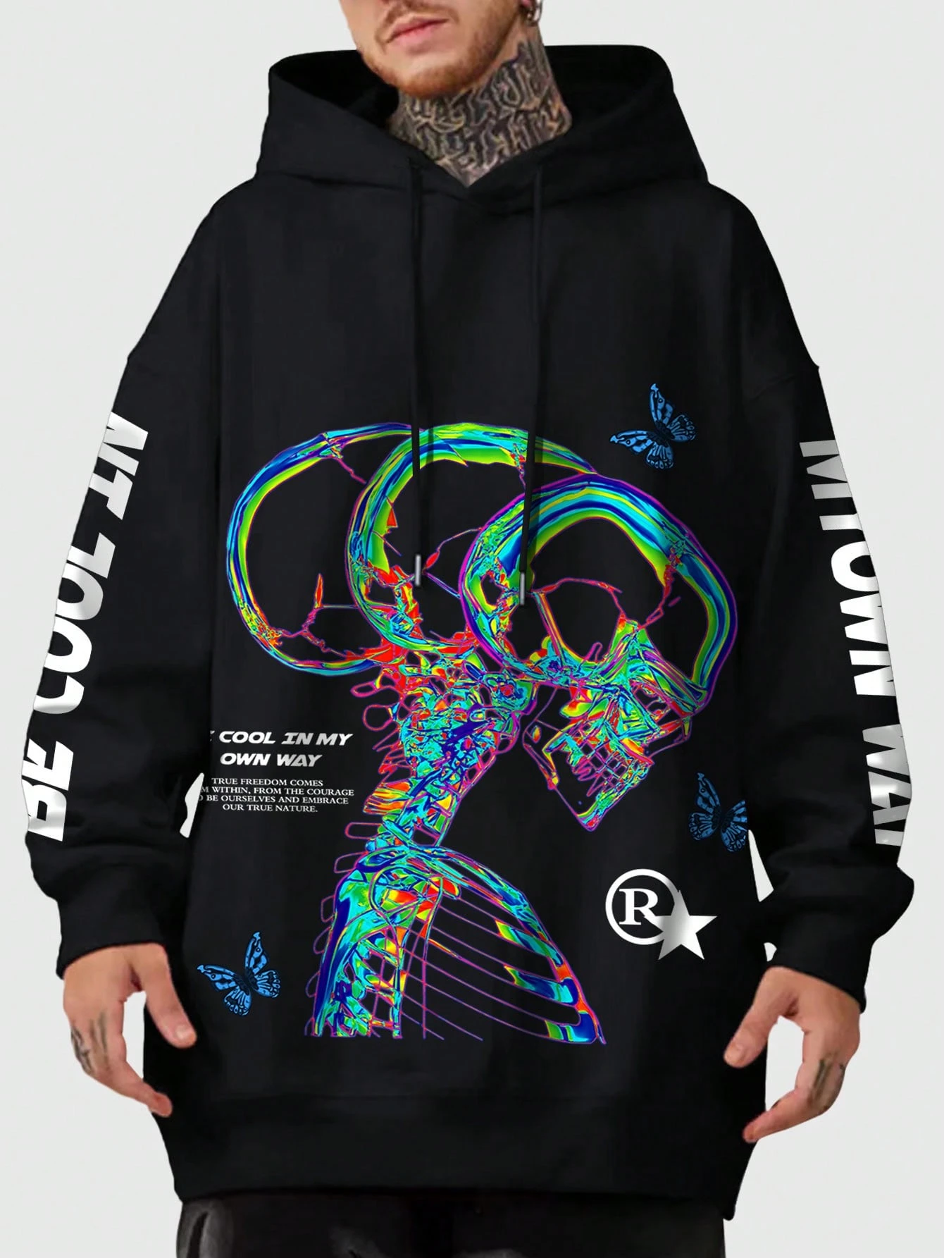 Street Life Sweat-shirt À Capuche Pour Homme Imprimé Lettre Et Crane