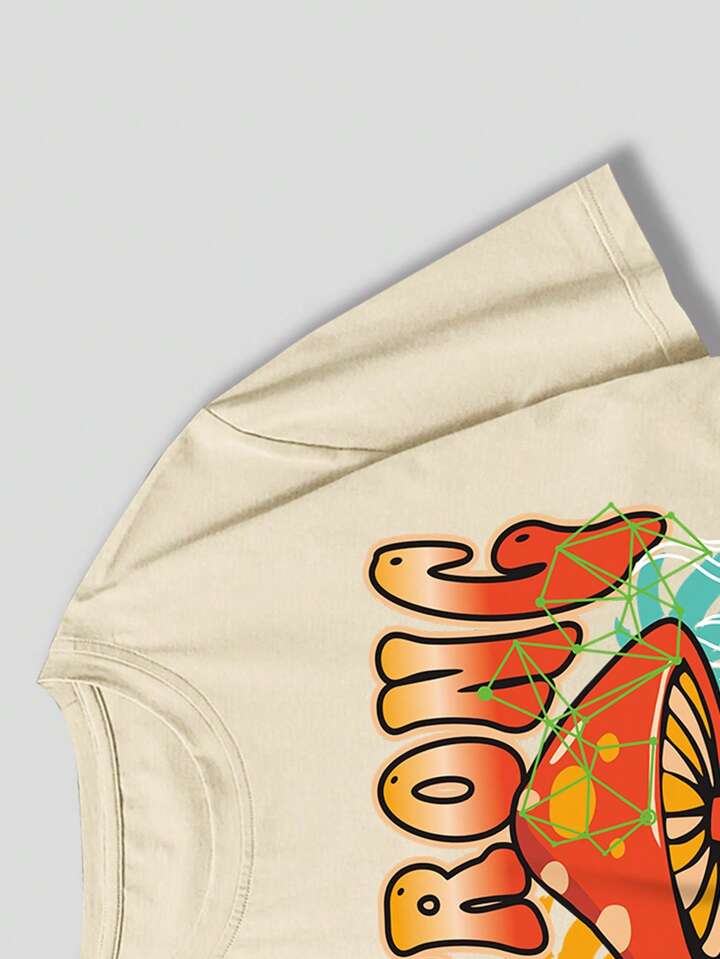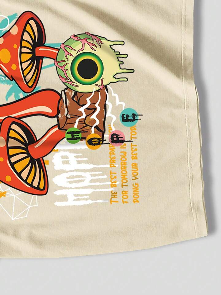 Street Life T-shirt graphique avec slogan et champignon pour hommes, école