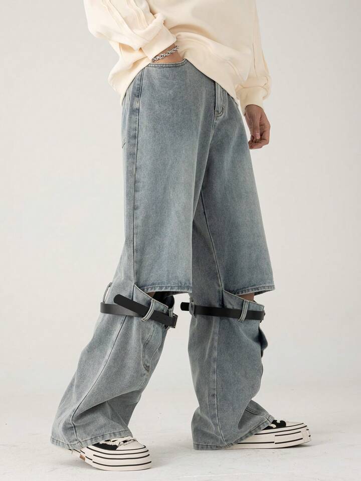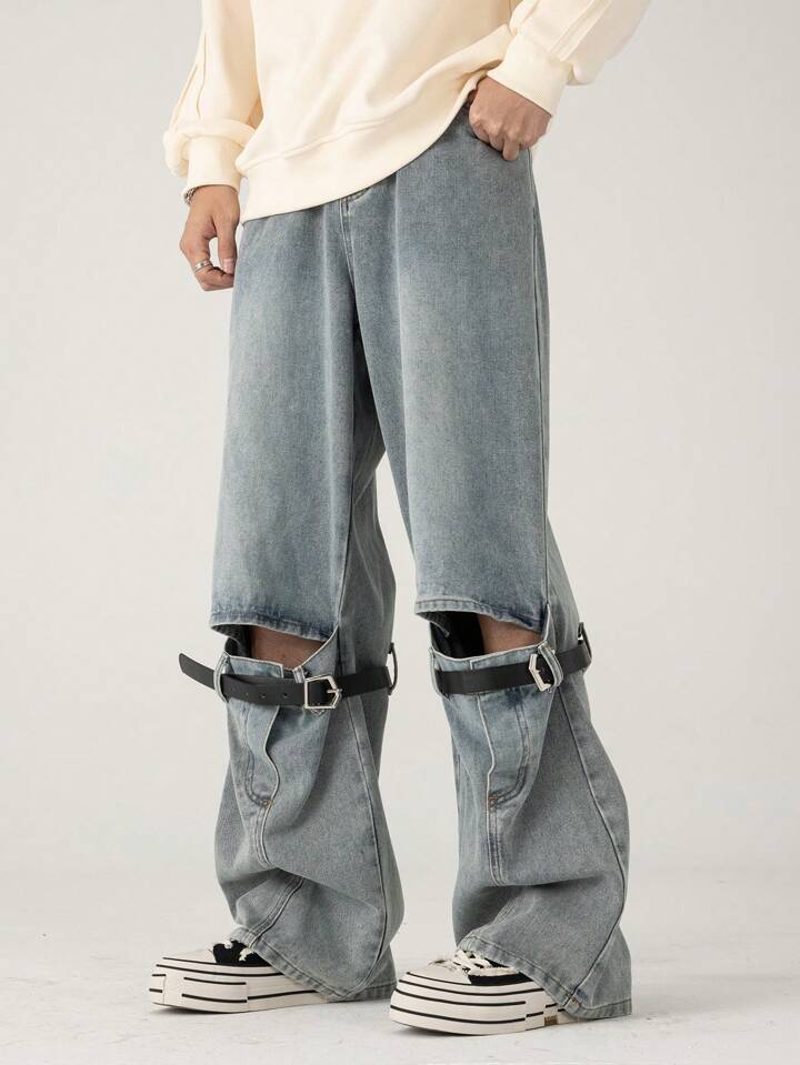 Street Life Jean Pour Homme Décoré D'une Ceinture À Évider