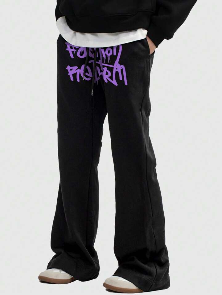 Street Life Pantalon De Survêtement À Taille Avec Cordon De Serrage Imprimé Lettre Pour Hommes