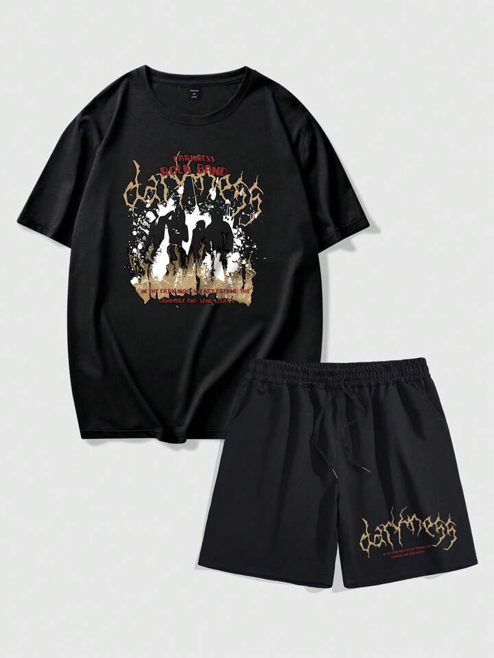 Street Life Ensemble T-shirt Et Short Pour Hommes Imprimé Avec Lettre