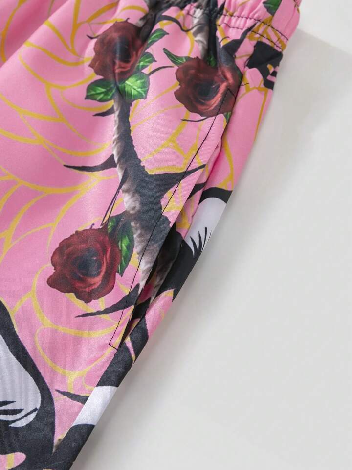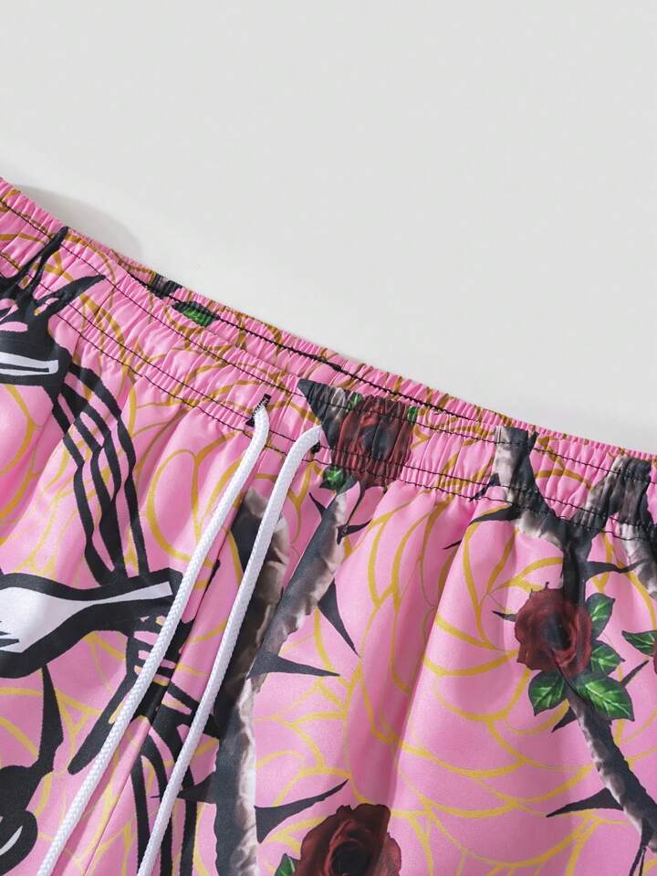 Street Life Shorts Imprimés À La Main De Crâne De Rose Pour Hommes