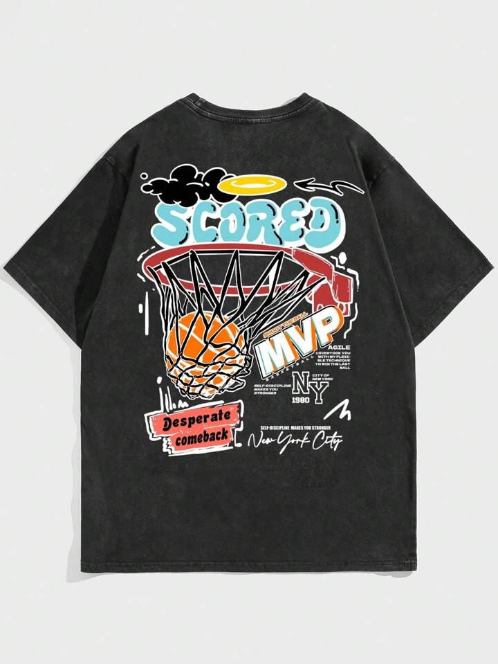 Street Life T-shirt À Manches Courtes Pour Hommes Avec Impression De Basket Et De Texte