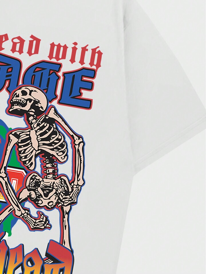 Street Life T-shirt YZK avec motif de squelette et de lettre pour homme, pour Halloween, école