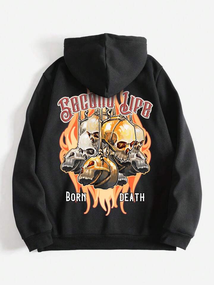 Street Life Homme Sweat-Shirt À Capuche Motif Tête De Mort Et Lettre À Cordon À Doublure Thermique
