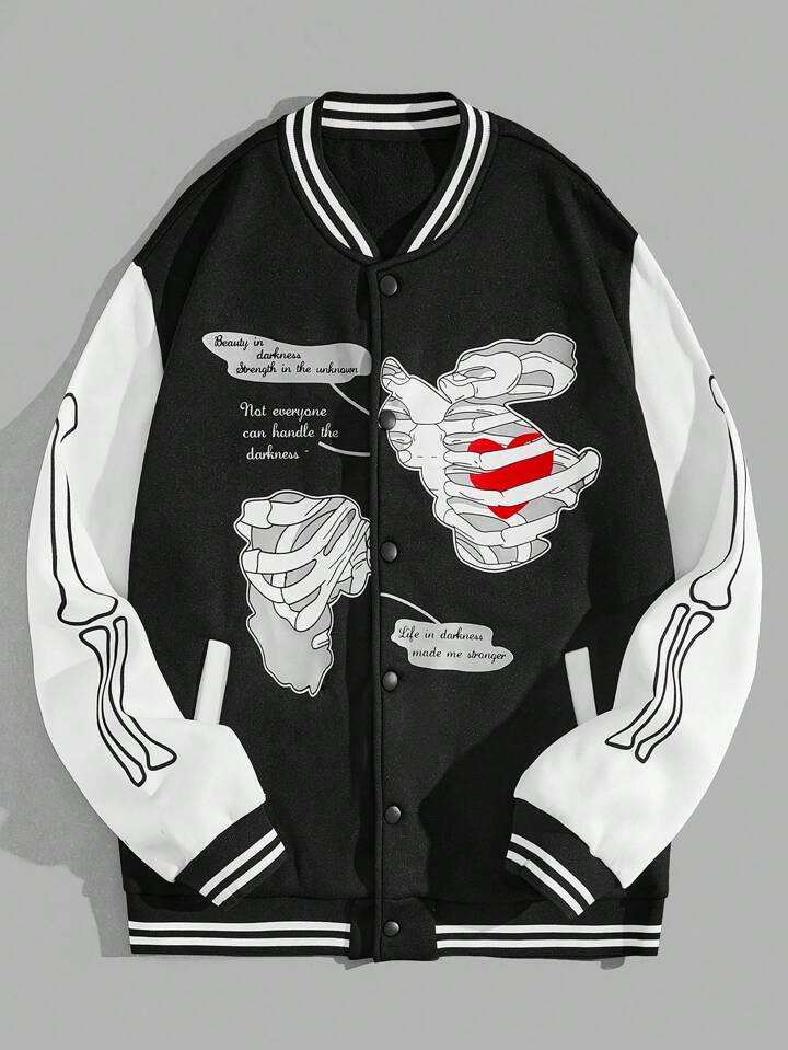 Street Life Veste De Baseball Pour Homme À Motif De Crâne Et De Lettre