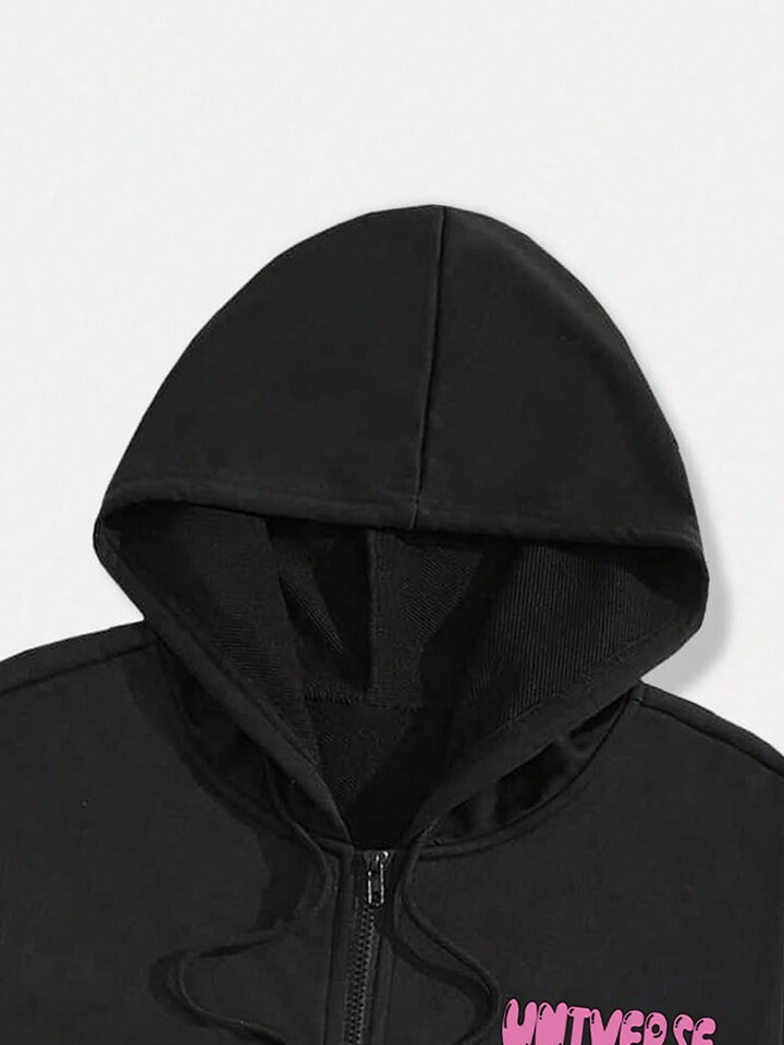 Street Life Sweat À Capuche Cordon De Serrage Graphique Pour Hommes, Slogan Et Dessin Animé
