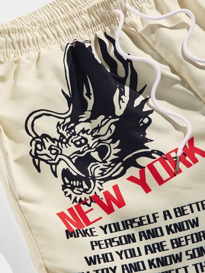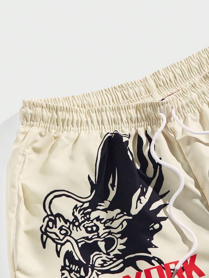 Street Life Shorts À La Taille À Cordon De Serrage Pour Homme Avec Impression De Dragon Et Feu Et Slogan