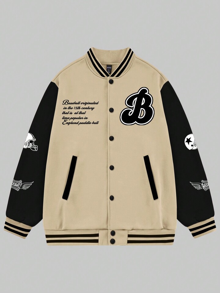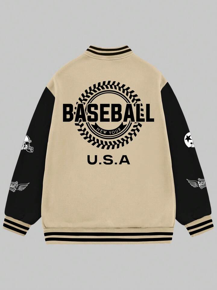 Street Life Blouson Universitaire À Slogan Graphique Pour Homme Avec Bordure À Rayures
