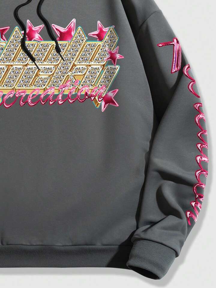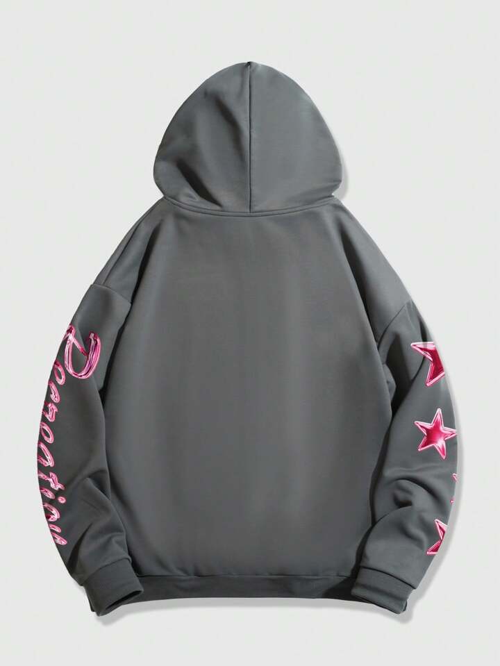 Street Life Sweat-shirt À Capuche Avec Cordon De Serrage Et Motif Étoile Et Lettre Pour Hommes