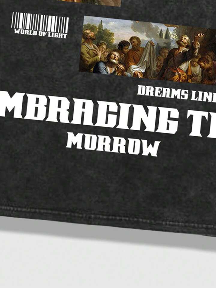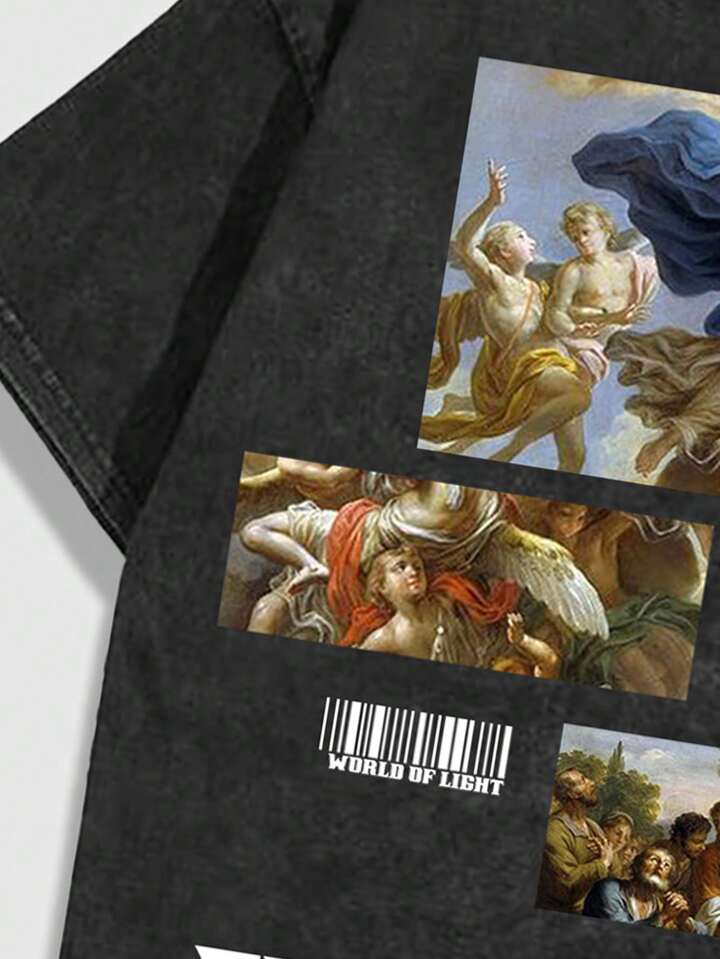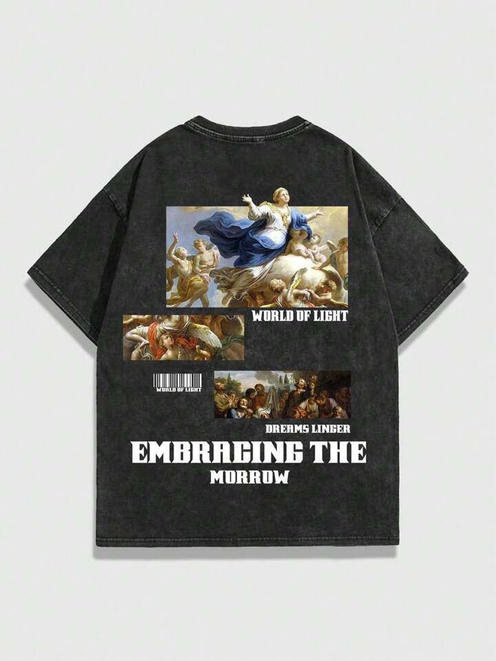 Street Life T-shirt à manches courtes pour hommes avec imprimé étoile à cinq branches lavé à l'acide, convient pour le port quotidien au printemps et en été