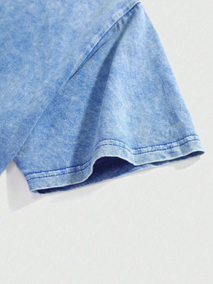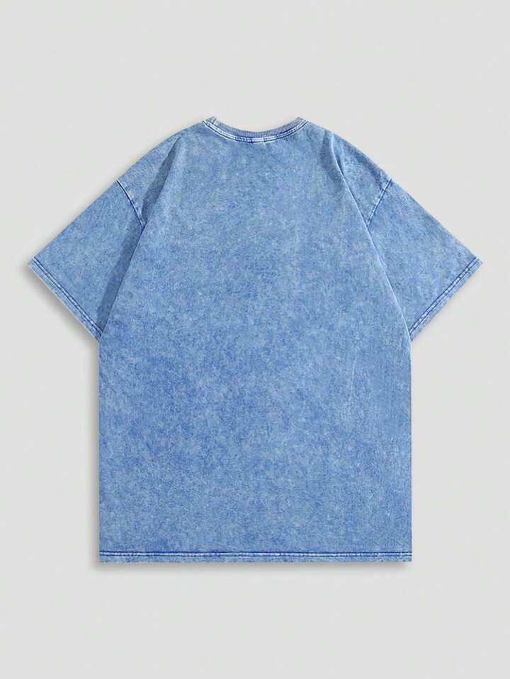 Street Life T-shirt à manches courtes avec effet lavé acide "Little Angel" pour hommes, convient pour le port quotidien, le printemps et l'été, l'école