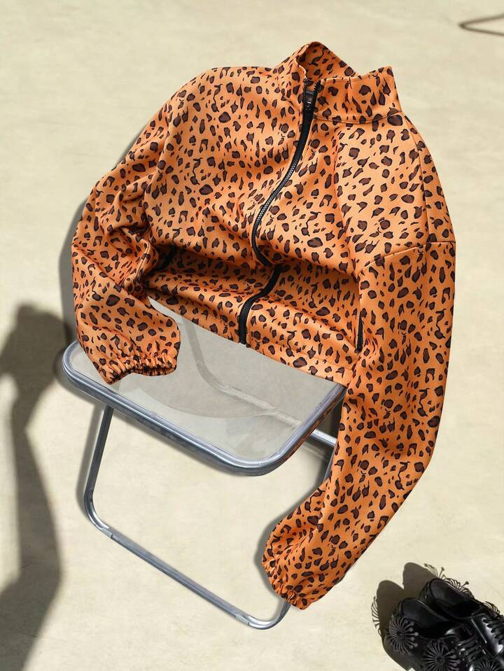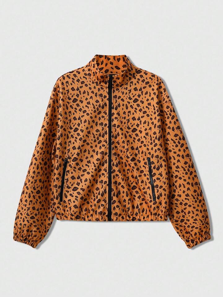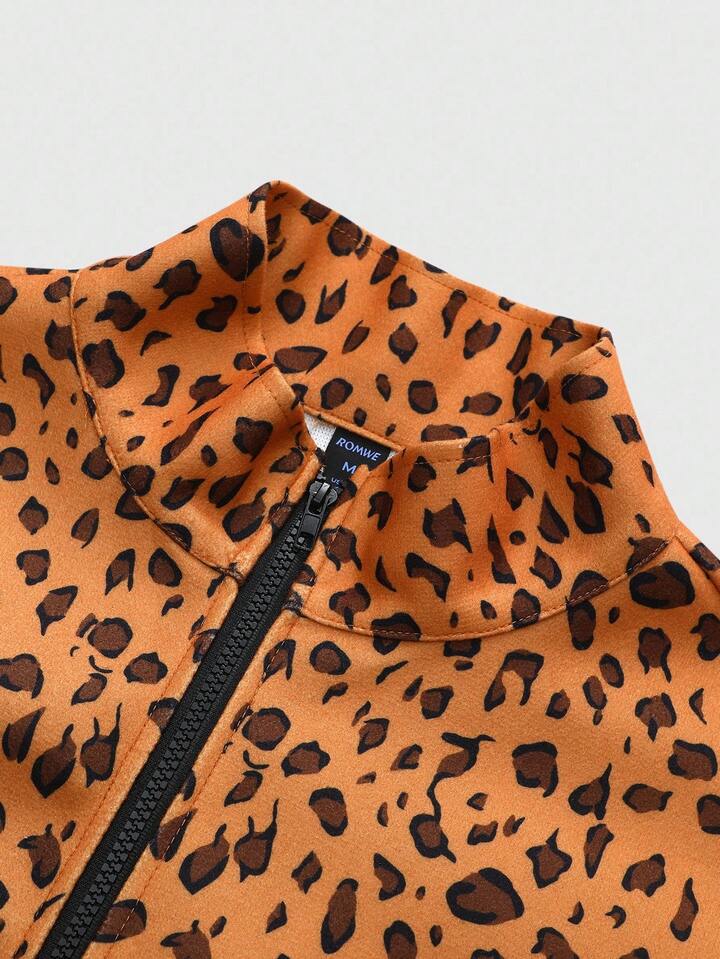 Street Life Veste à col montant avec imprimé animal léopard pour homme, convient pour l'automne/l'hiver