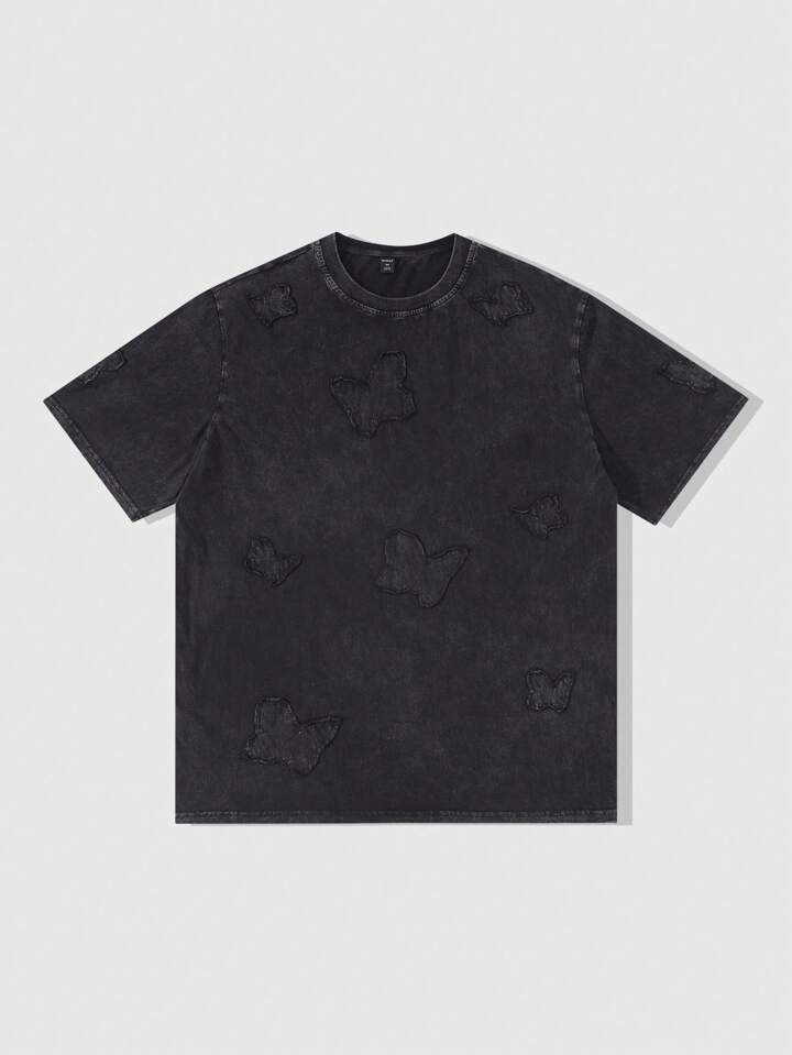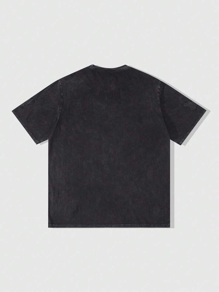 Street Life T-shirt ample à manches courtes lavé avec application pour hommes