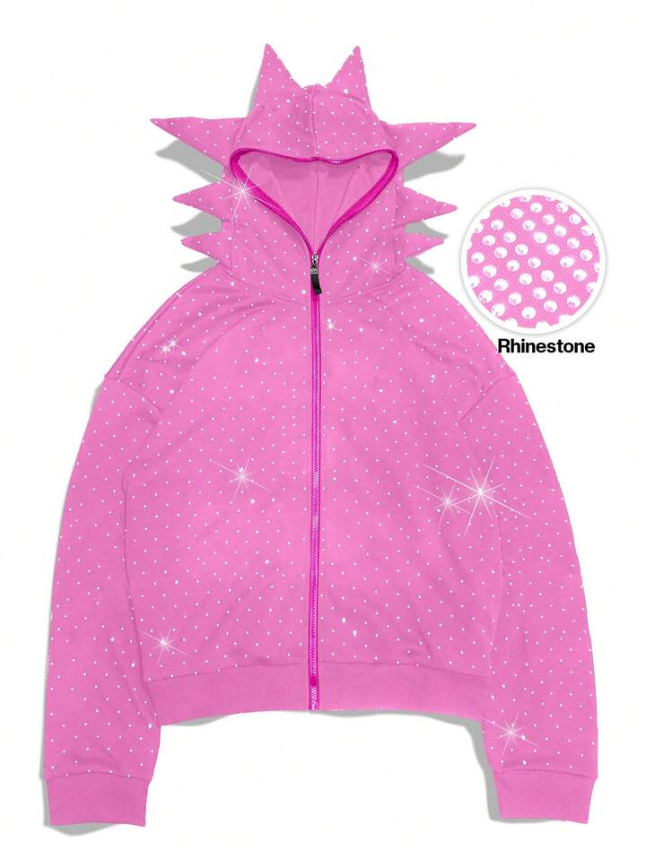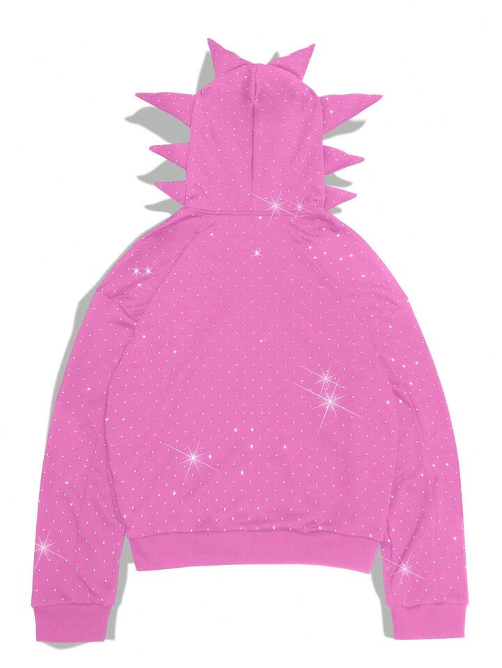 Street Life Chapeau asymétrique d'antenne pour hommes, sweat-shirt à capuche avec strass étincelants, style ample et court