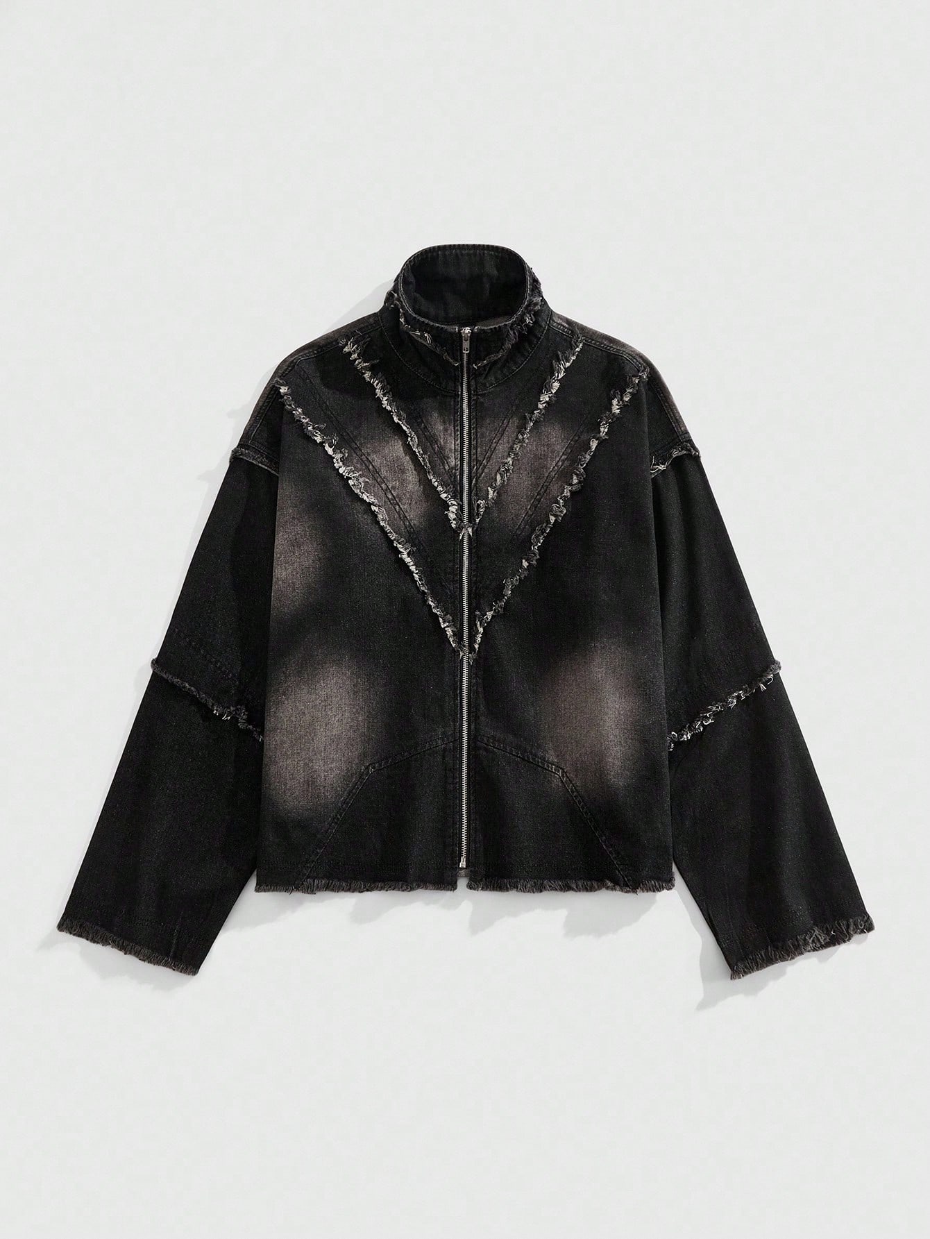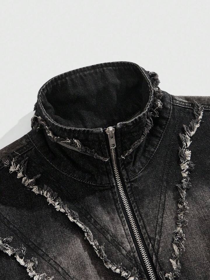 Street Life Veste en jean décontractée à manches longues avec design effiloché pour hommes, pour l'automne
