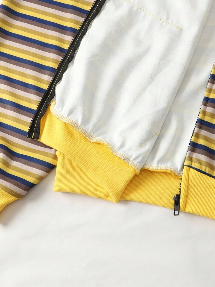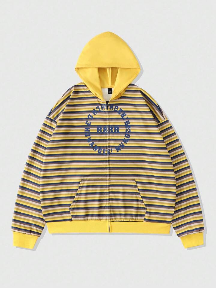 Street Life sweat-shirt à capuche zippé à manches longues, rayures et lettres, coupe ample pour homme, automne