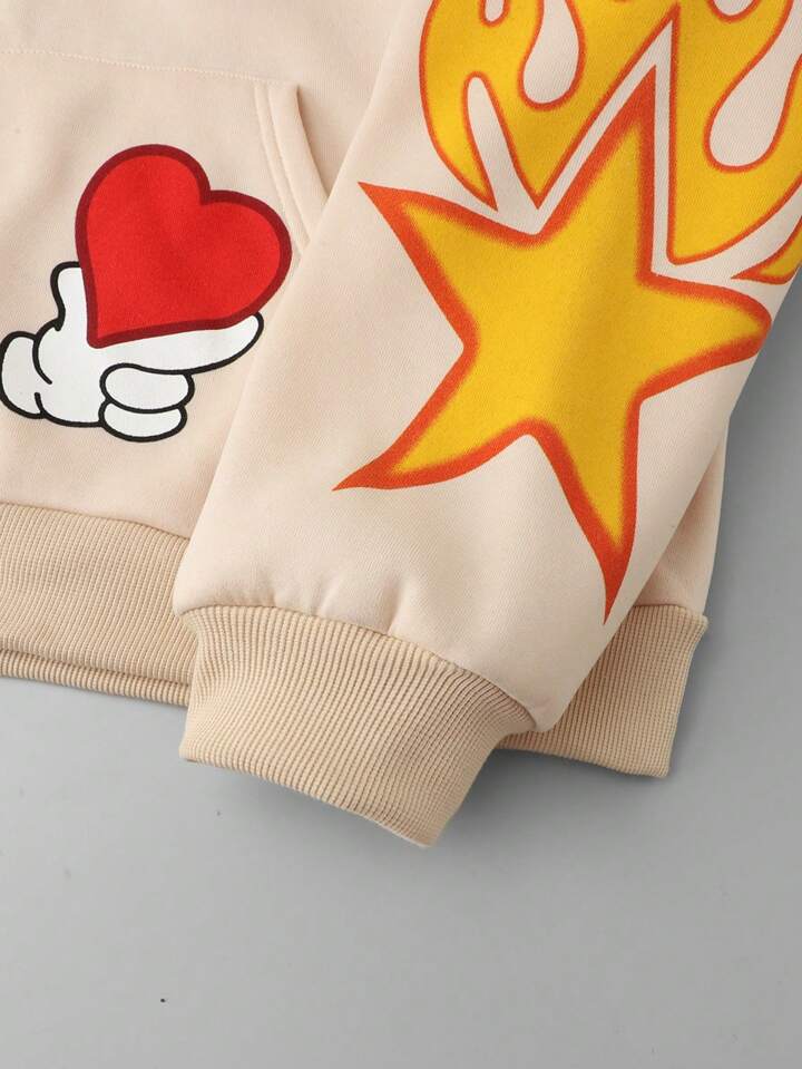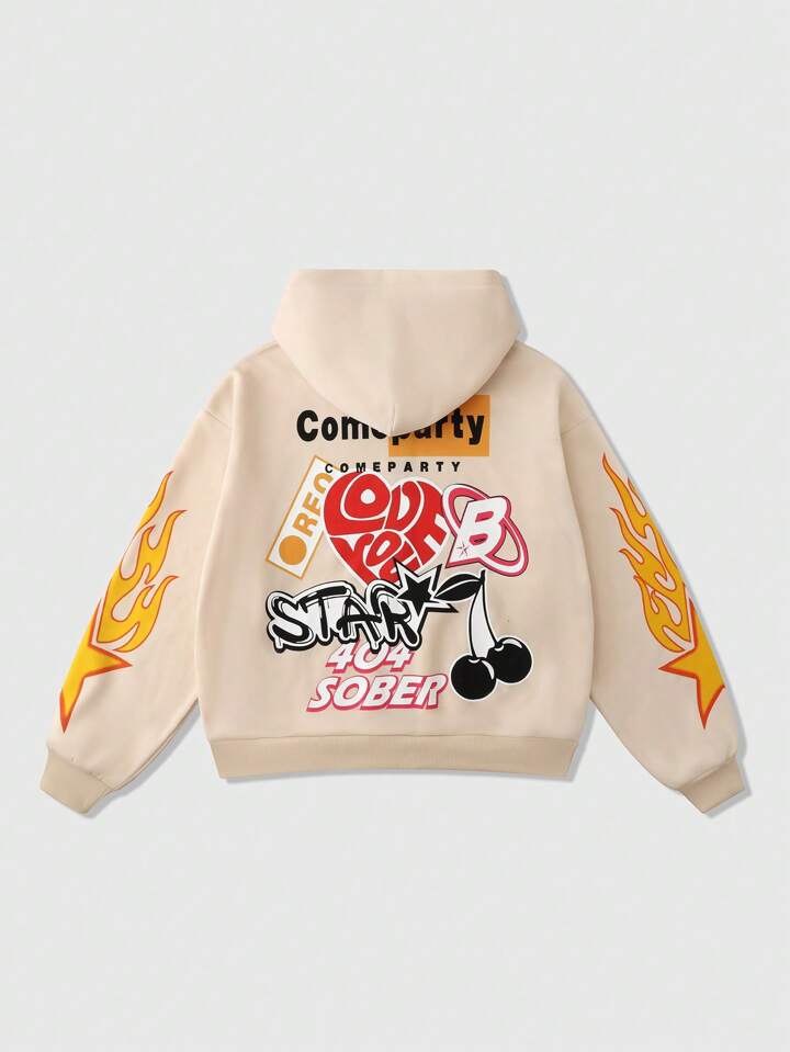 Street Life Sweatshirt décontracté à capuche zippé avec imprimé lettre et flamme, pour hommes, automne/hiver