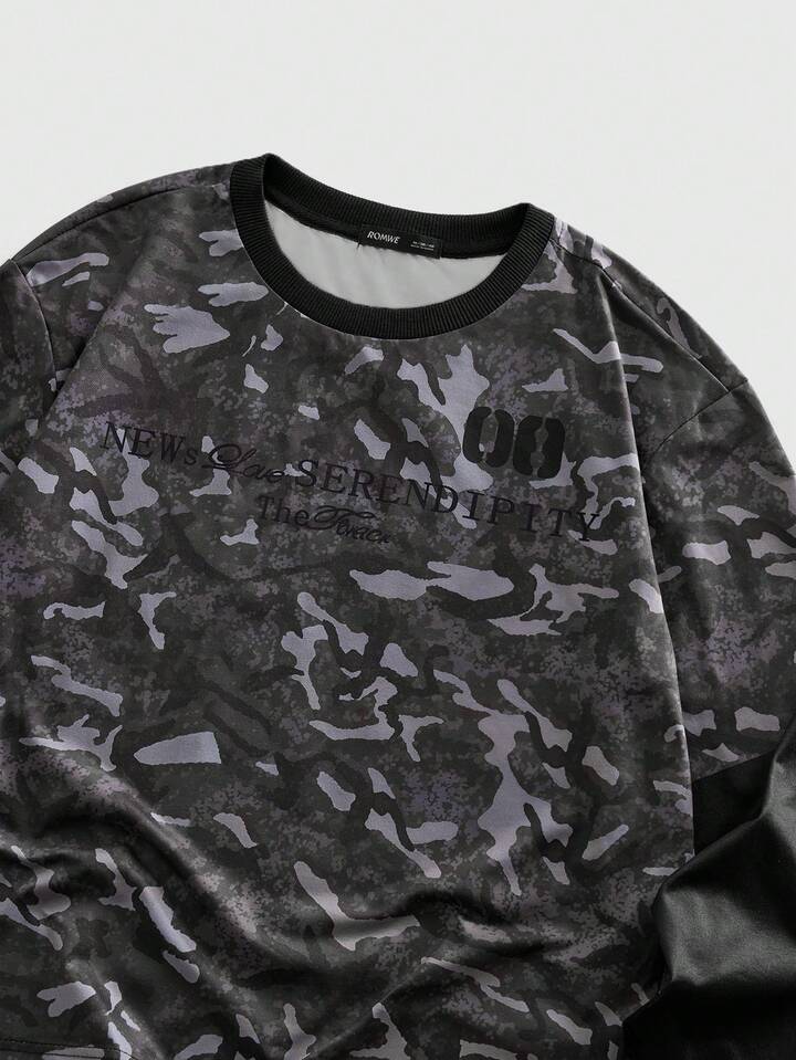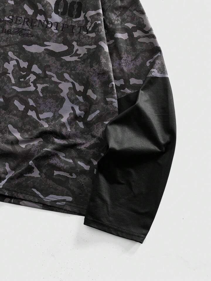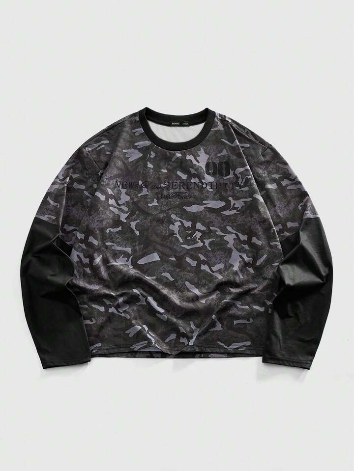 Street Life T-shirt décontracté à col ras-du-cou à manches longues avec imprimé camouflage pour hommes
