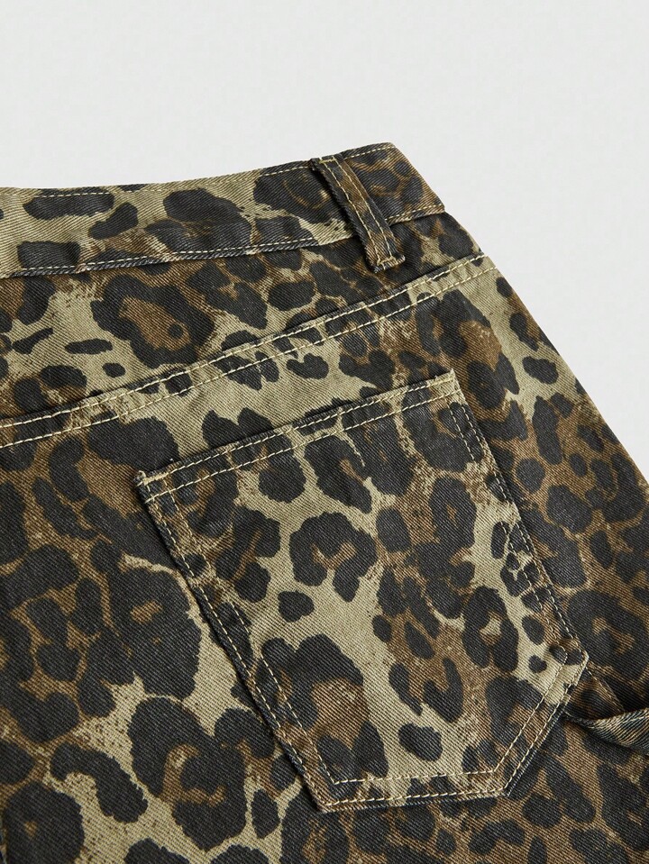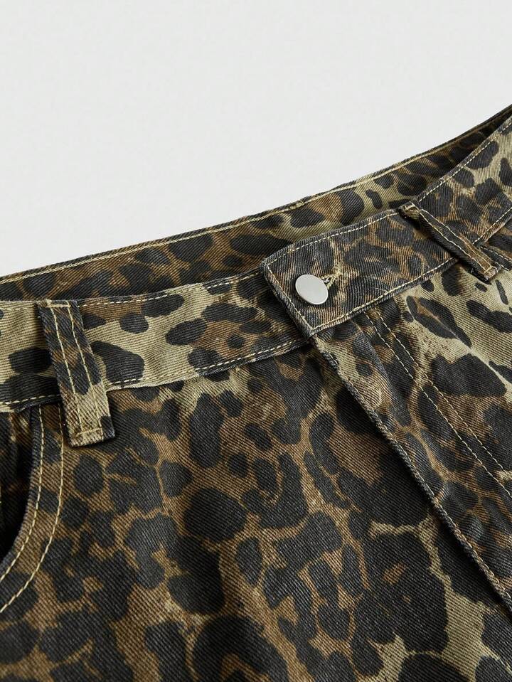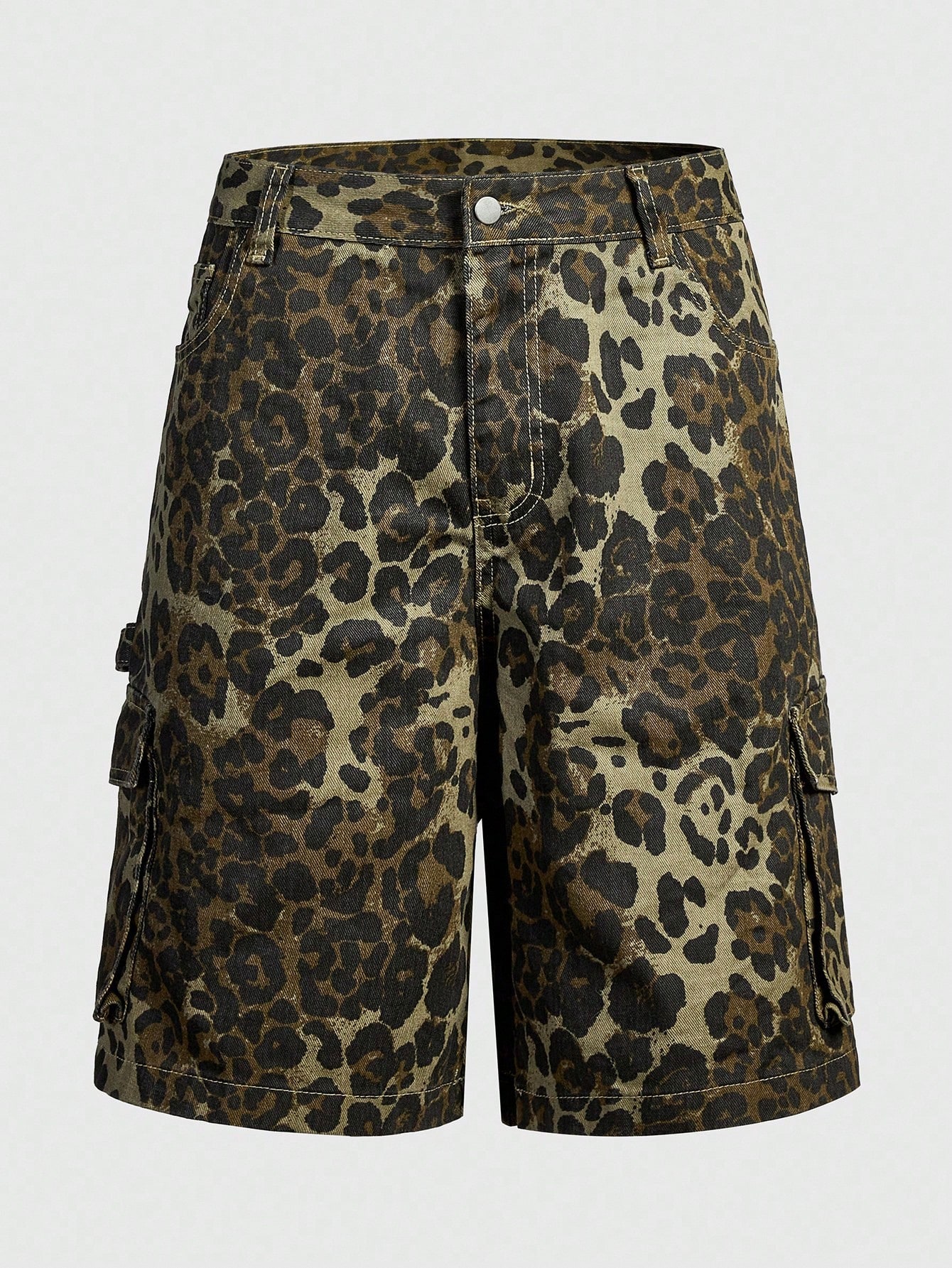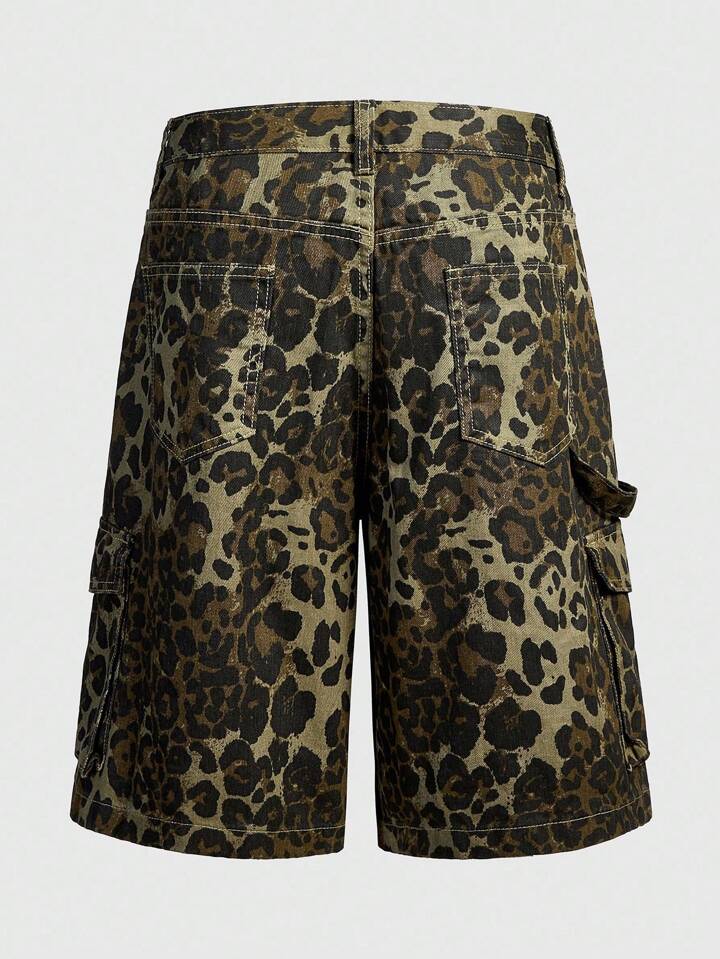 Street Life Short en jean décontracté à poches cargo avec imprimé léopard ample pour hommes