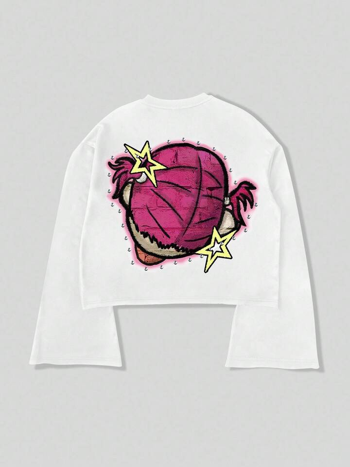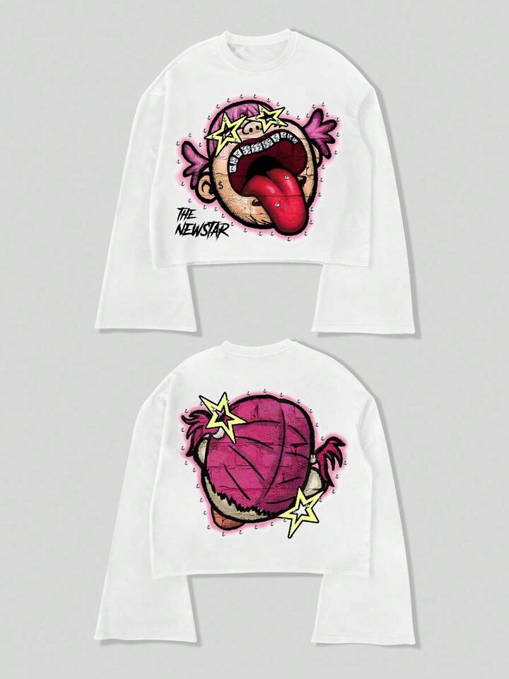Street Life T-shirt décontracté à manches longues et col ras-du-cou avec imprimé de personnage de dessin animé pour hommes