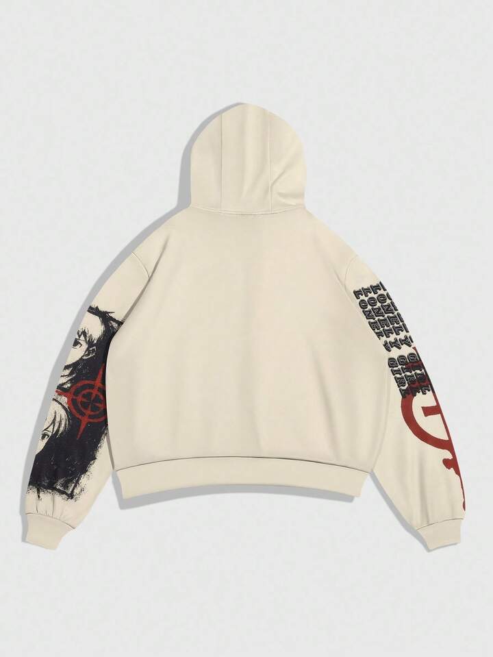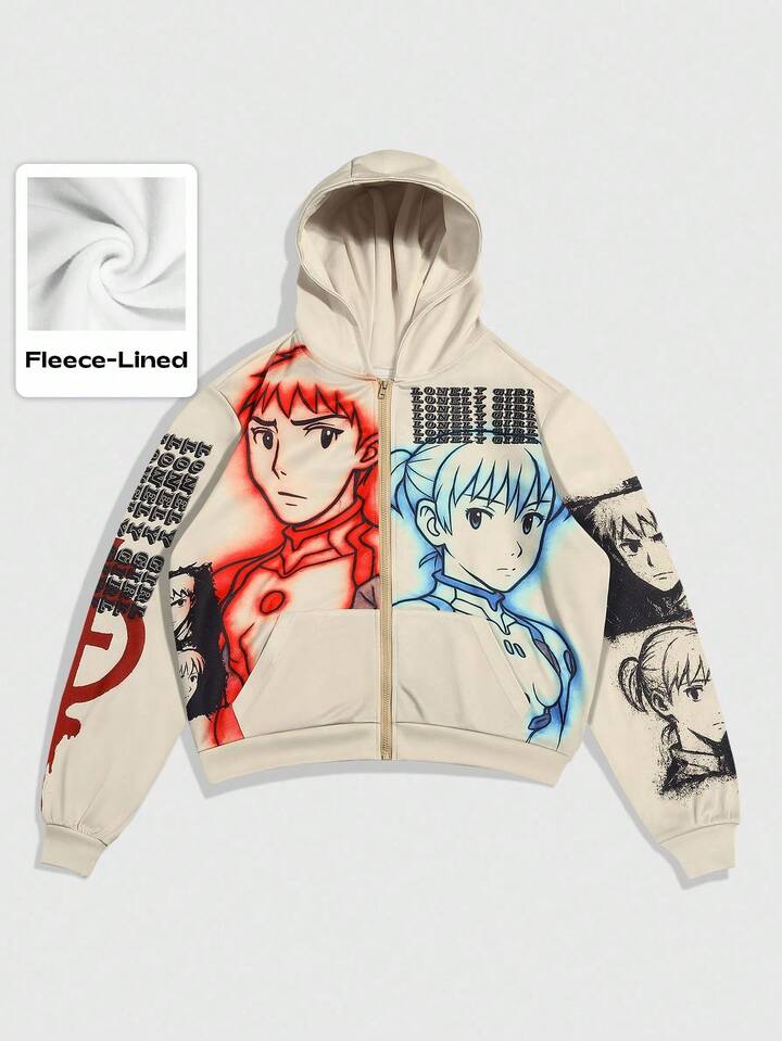 Street Life Sweat-shirt à capuche zippé décontracté à manches longues, doublé thermique avec imprimé de personnage de dessin animé pour hommes