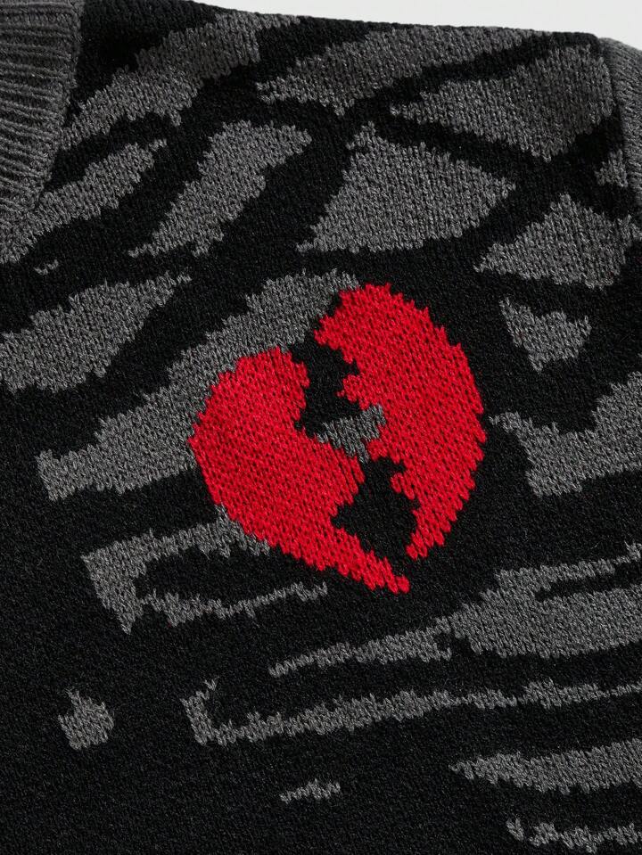Street Life Pullover à col rond à manches longues pour hommes, motif d'os casual et broderie de cœur