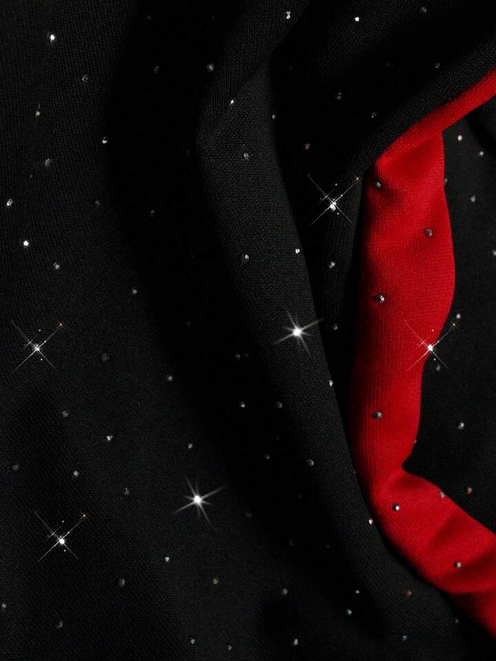 Street Life Polo à manches longues pour hommes, col contrasté avec ornements de strass, style décontracté