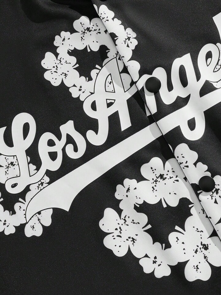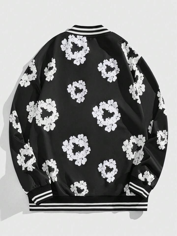 Street Life Blouson de baseball à imprimé floral et lettres décontracté pour hommes, printemps/automne