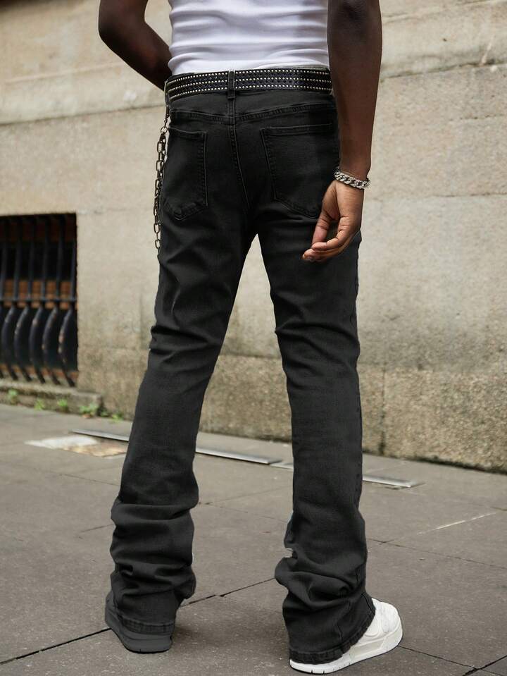 Street Life Jeans décontractés à coupe évasée et superposée avec poches pour hommes