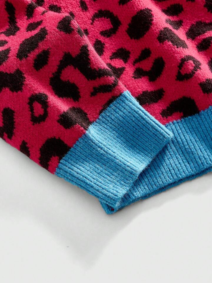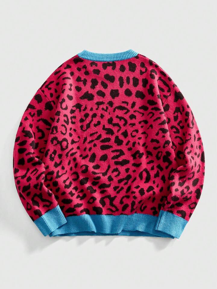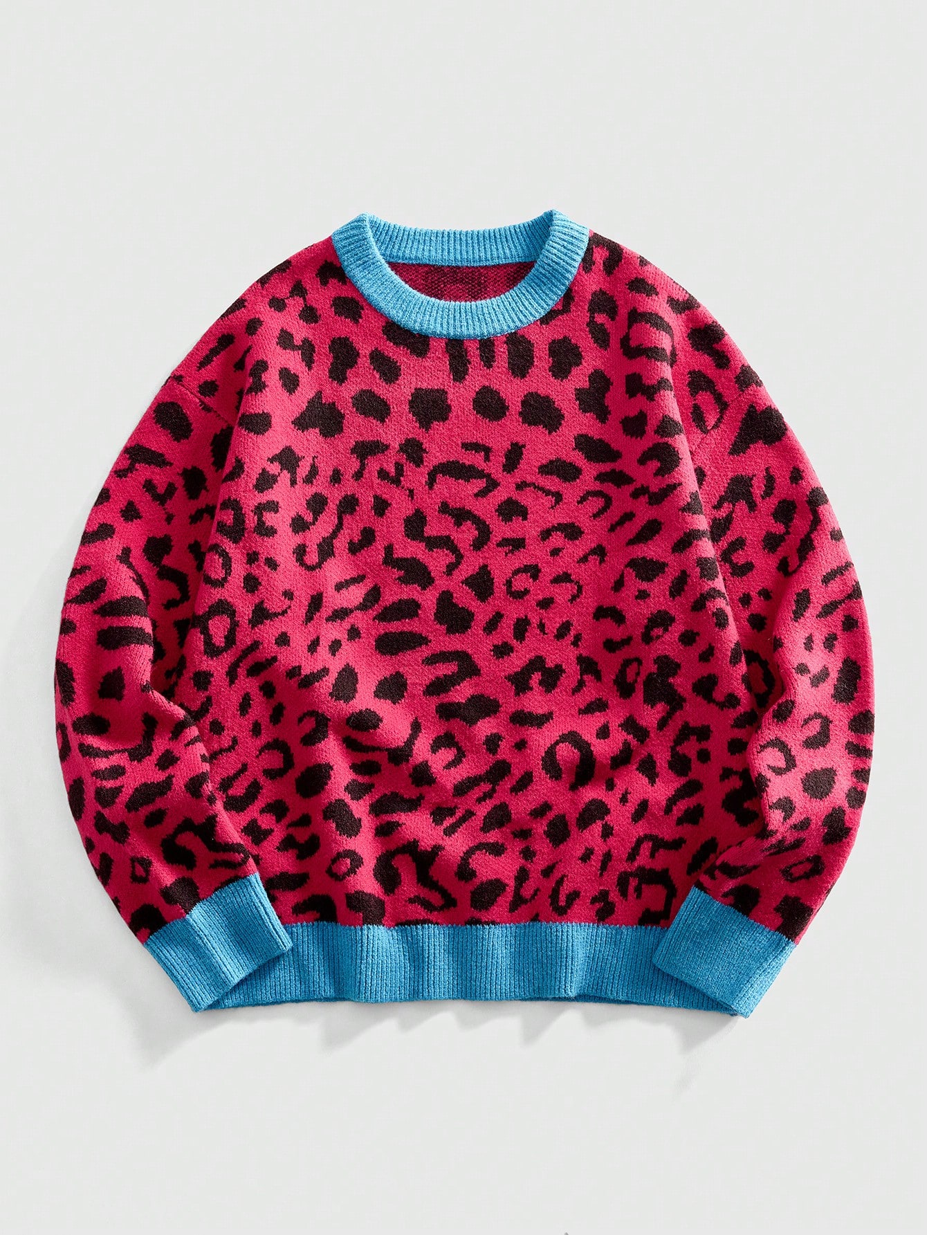 Street Life Pull tricoté à motif léopard casual pour homme, col rond, manches longues, automne/hiver