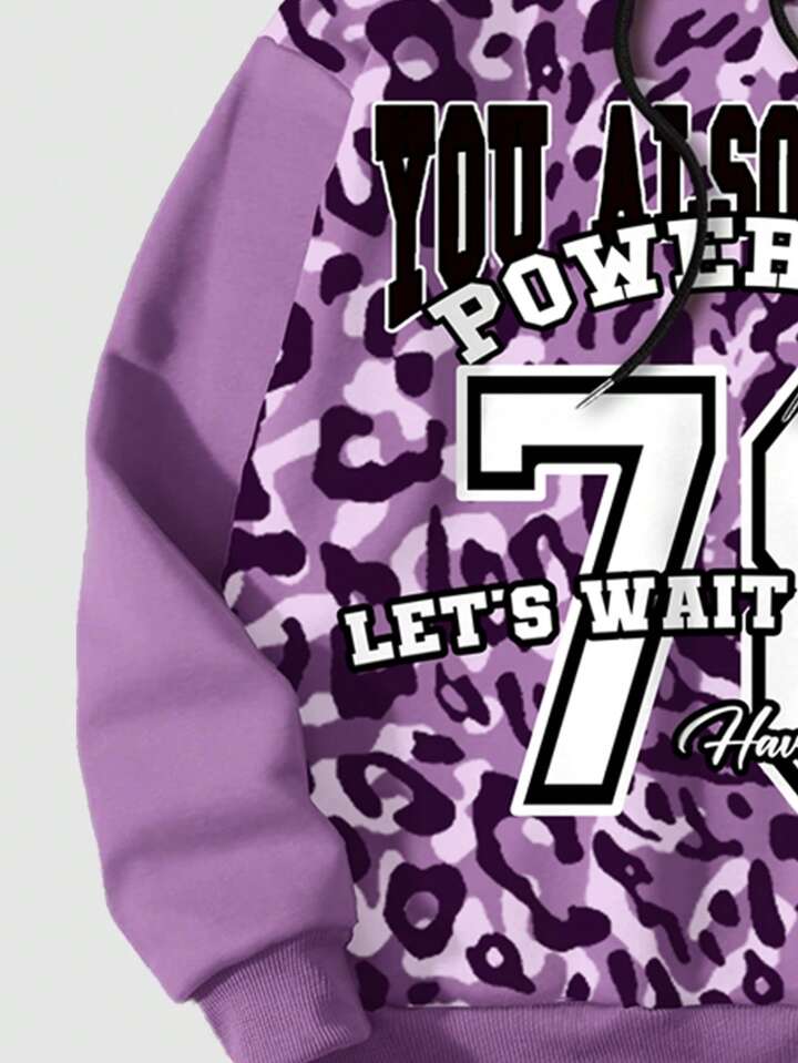 Street Life Sweatshirt ample à capuche à cordon de serrage avec imprimé léopard et lettre, style décontracté, printemps automne