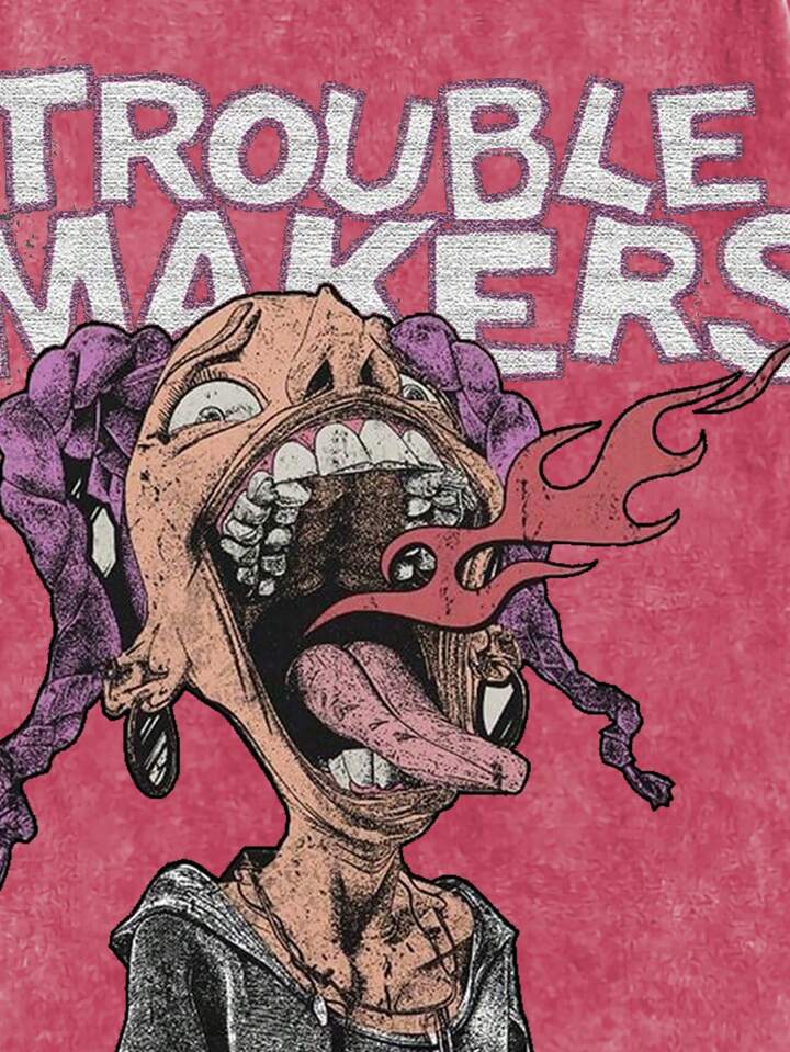 Street Life T-shirt à manches courtes col rond pour hommes, imprimé de lettres et de dessins animés, style décontracté