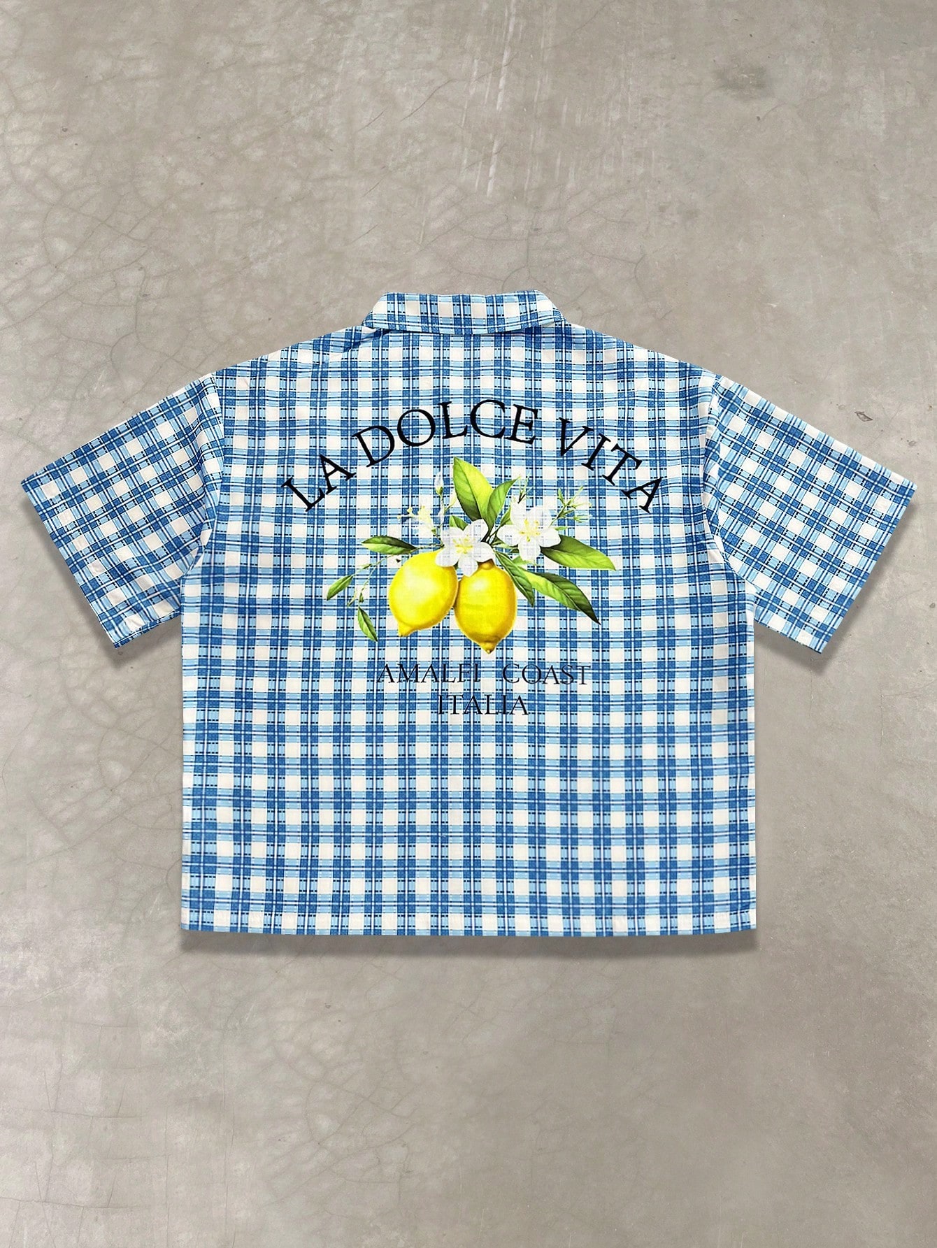 Street Life Chemise décontractée pour hommes à manches courtes, simple boutonnage, imprimé en grille avec lettres