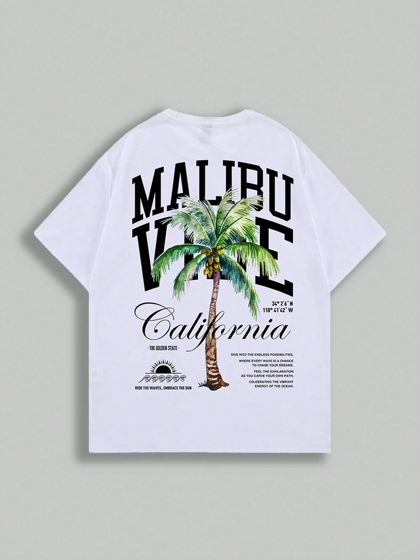Street Life T-shirt à manches courtes col rond homme casual, imprimé palmiers et slogan, été