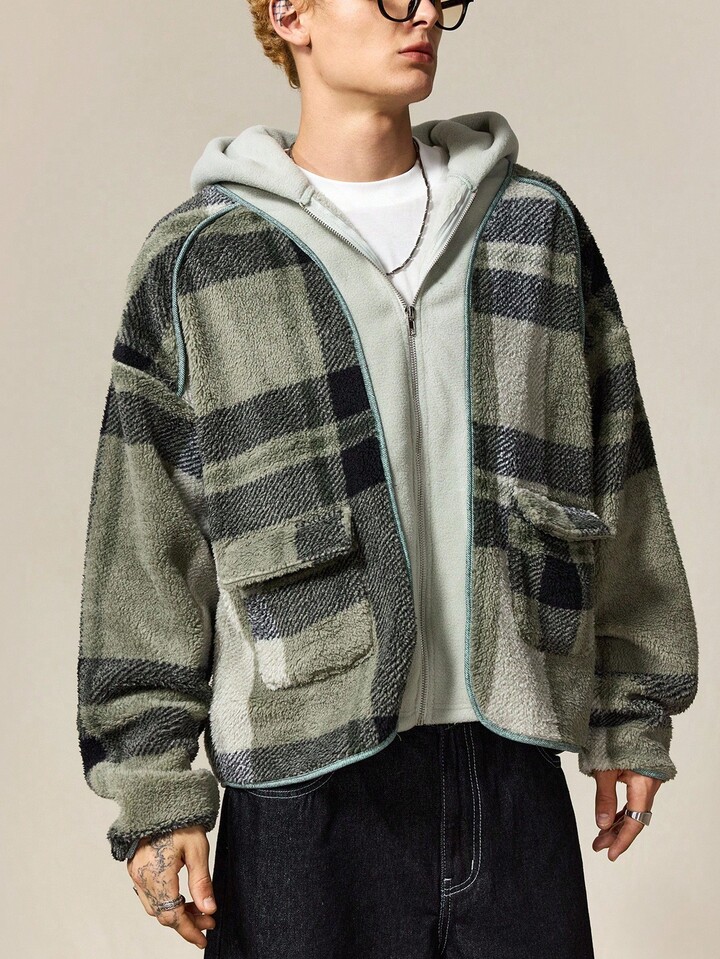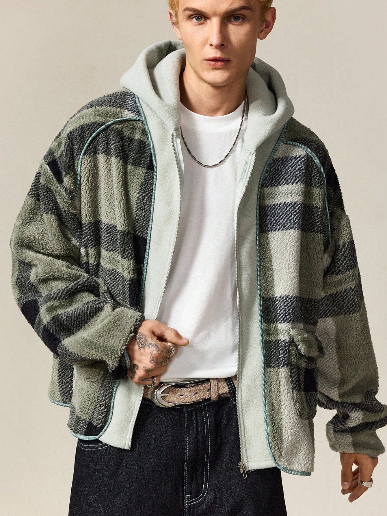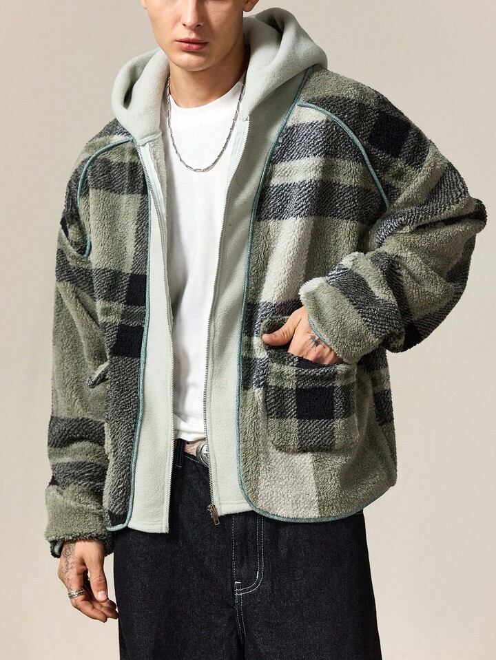 Street Life sweat-shirt à capuche décontracté à carreaux et patchwork pour hommes, automne/hiver
