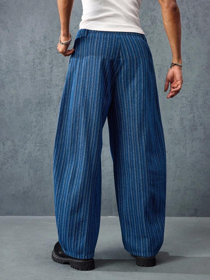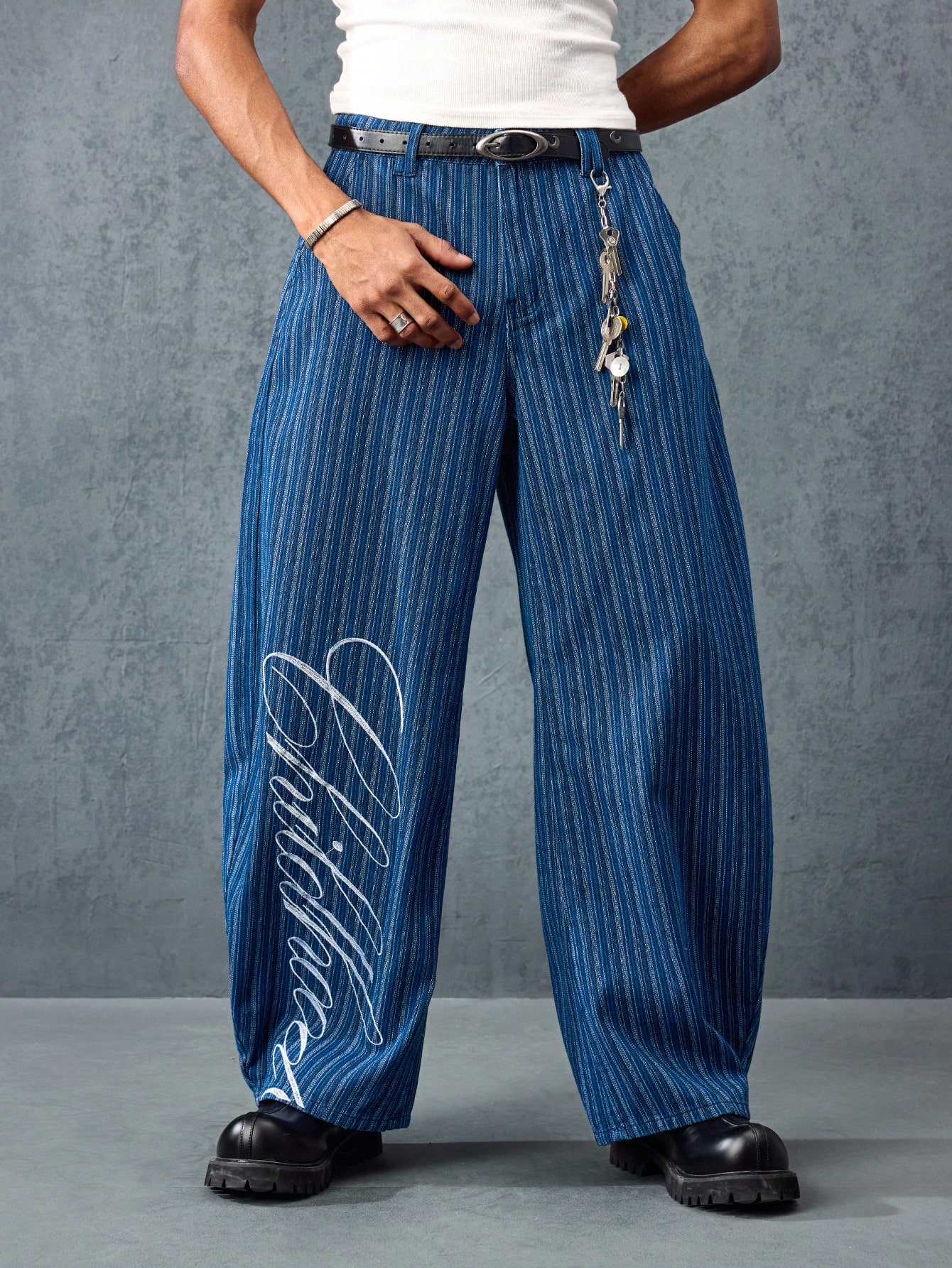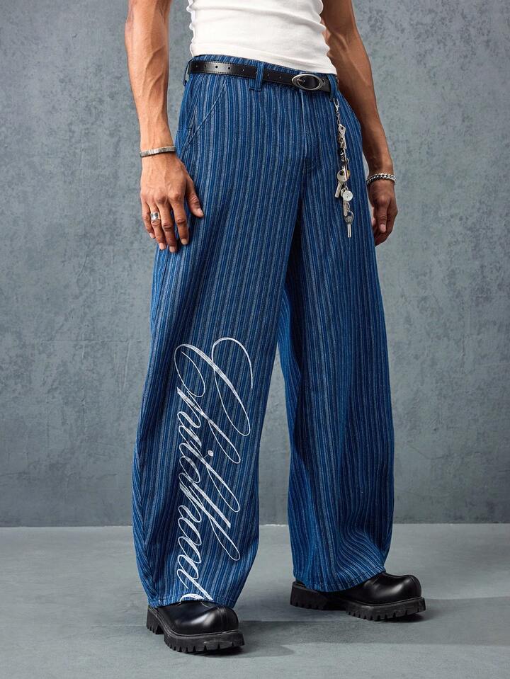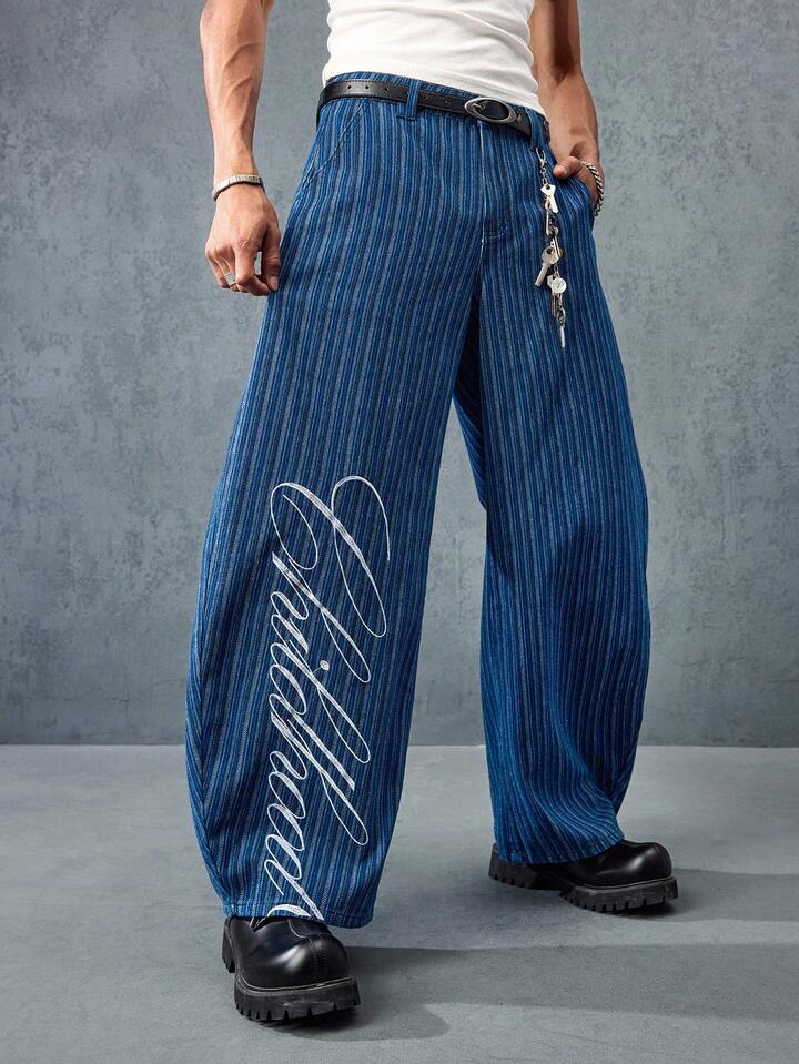 Street Life Jeans décontractés pour hommes avec imprimé rayé et ourlet incurvé