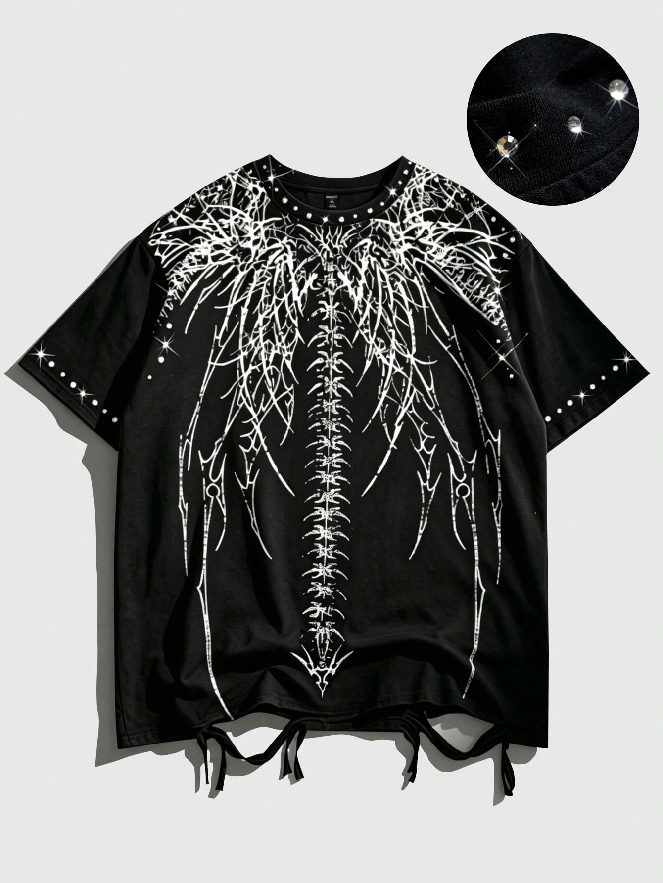 Street Life T-shirt à manches courtes pour hommes, style décontracté, strass, délavé, artistique, punk