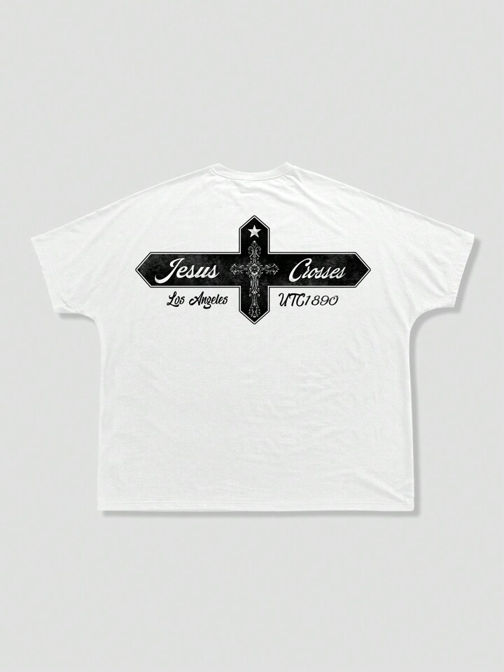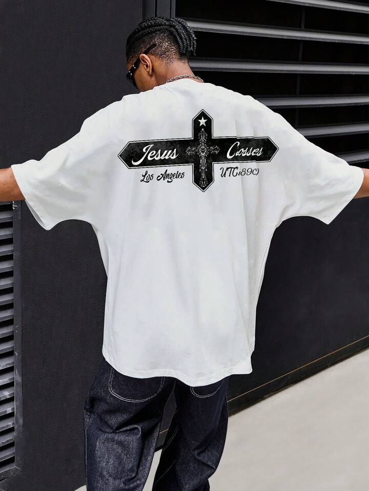 Street Life T-shirt à manches courtes décontracté pour hommes avec slogan et imprimé de figure