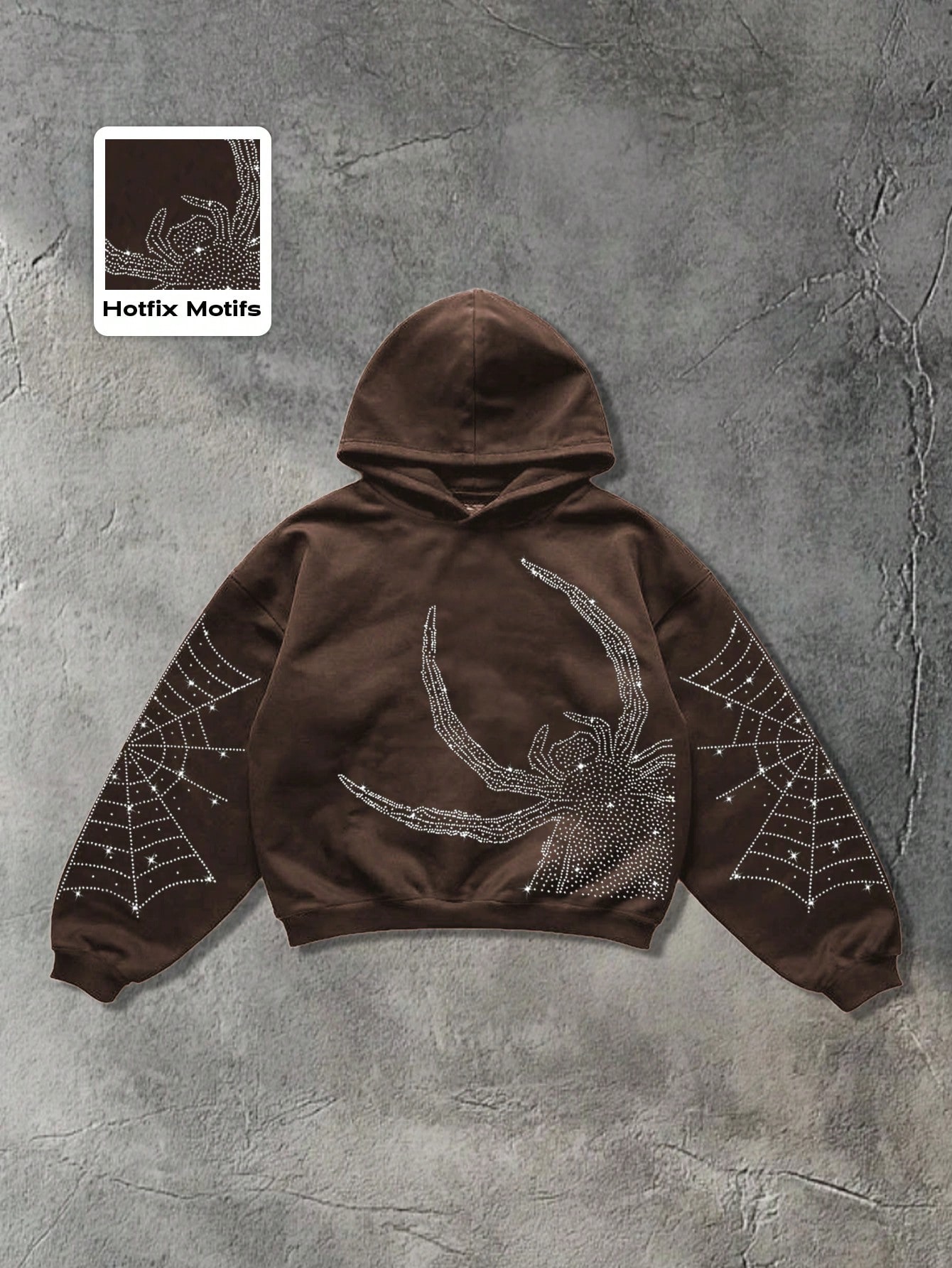 Street Life sweat-shirt à capuche casual pour hommes avec diamants scintillants et motif araignée, automne/hiver