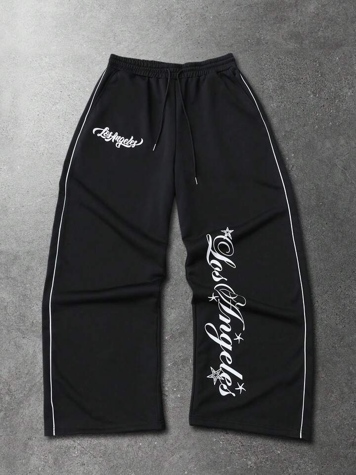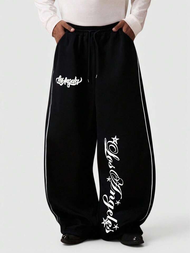 Street Life Pantalon de survêtement décontracté pour hommes avec imprimé lettrage et cordon de serrage à la taille