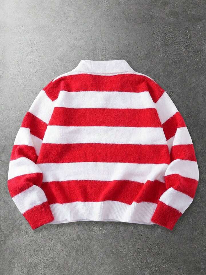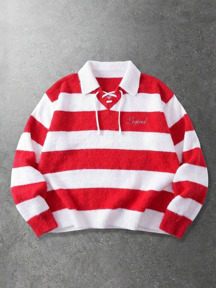 Street Life Pull à manches longues rayé décontracté pour hommes avec col cravate, automne/hiver