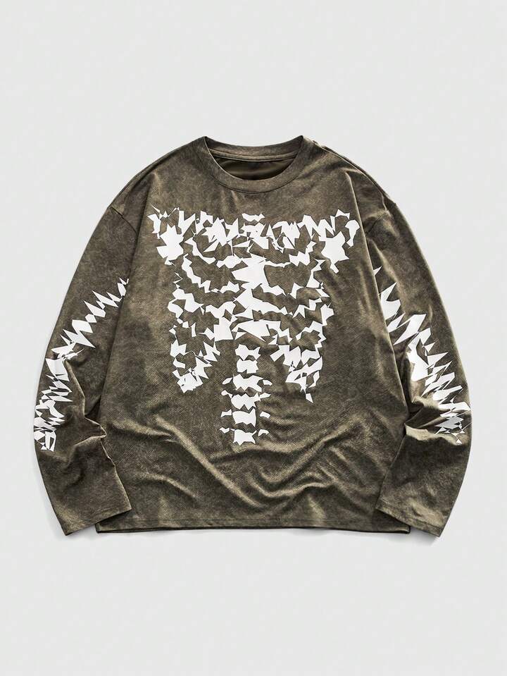 Street Life T-shirt à manches longues col rond décontracté et polyvalent pour hommes avec imprimé crâne sombre