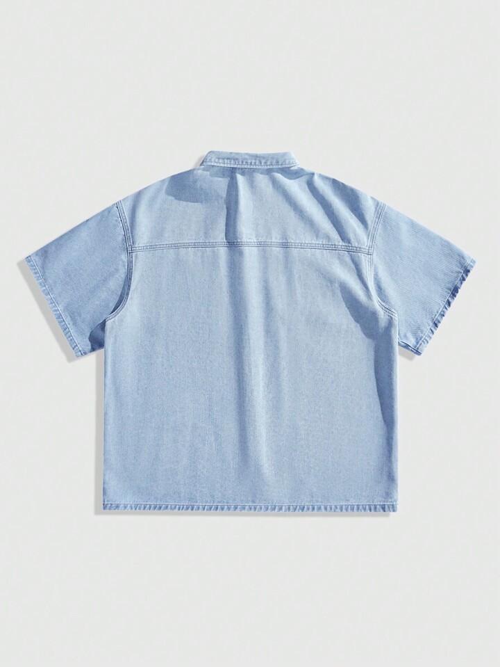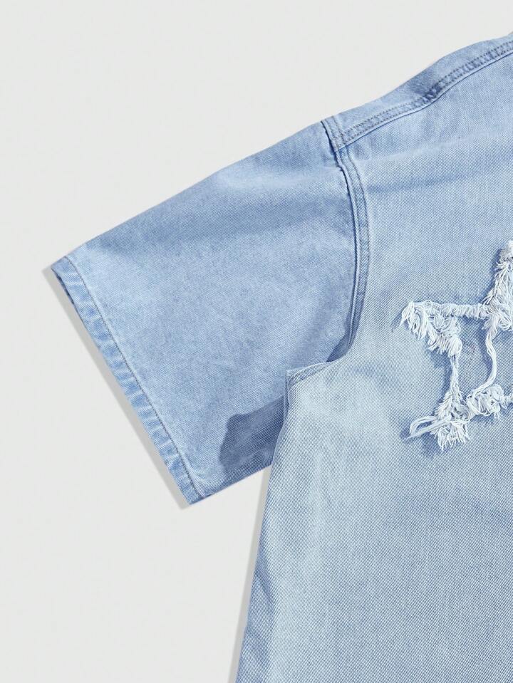Street Life Top en denim lavé décontracté pour hommes avec appliqué étoile et bord effiloché